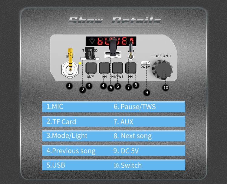 10W Portable High Power Led Colorful Light Stage Party Dj Music Audio Mic Subwoofer Karaoke Speaker
