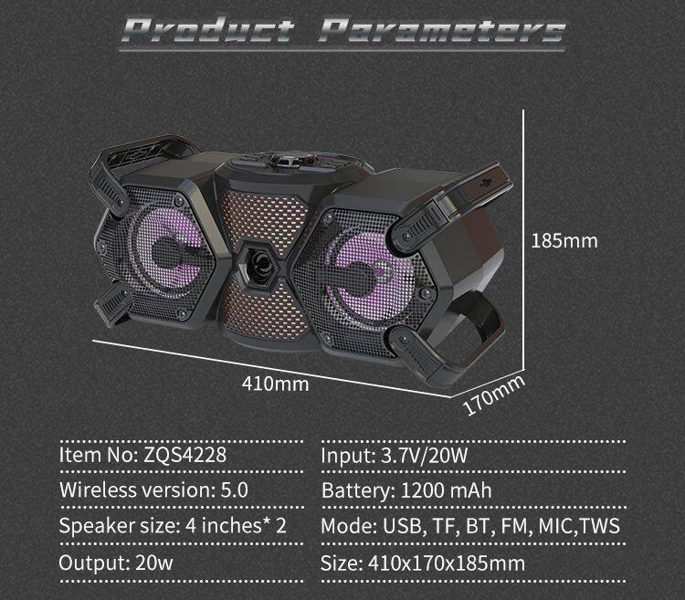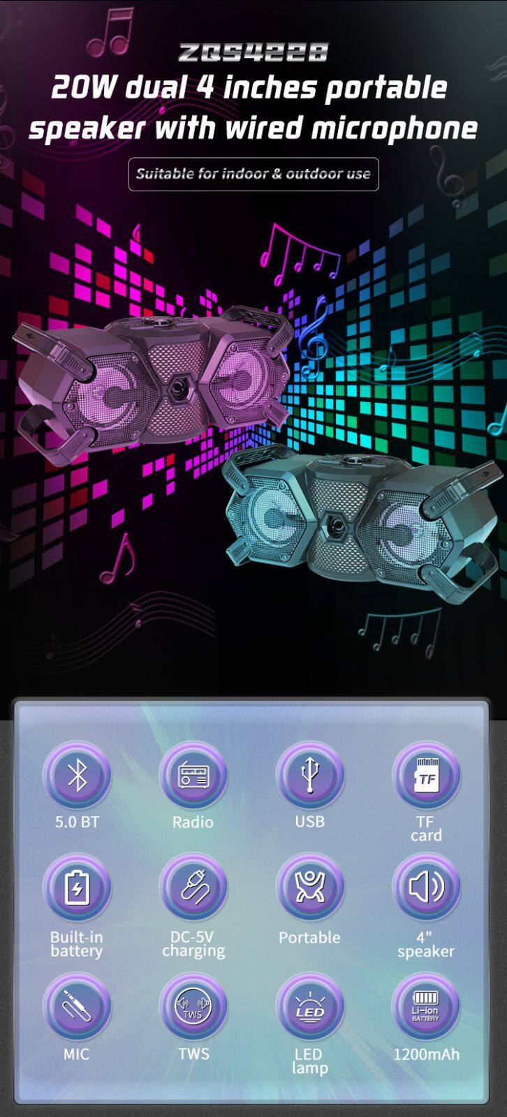 SING-E ZQS4228 High Power Portable Dual Speakers Rgb Light Music Player Big Sound Deep Bass Party Box Boombox Speaker