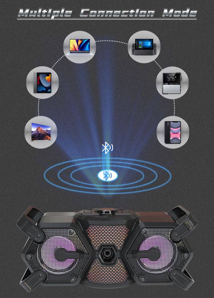 Dual 4 Inch Portable Speaker Multiple Play Modes 25 High Power Magic Light Design Wireless Speaker