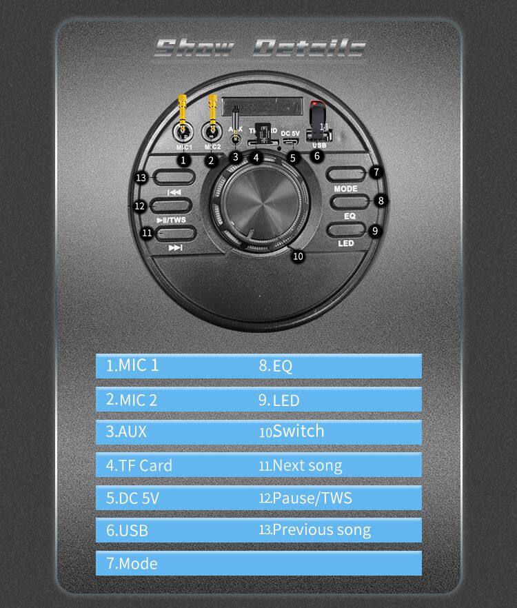 Portable High Power Led Light Remote Control Mic Wireless Outdoor Bass Stage Party DJ Karaoke Speaker