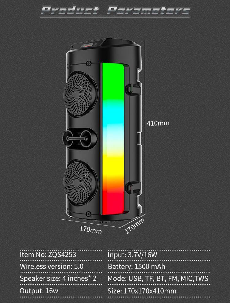 ZQS1483 Oem Portable 4-inch Speaker 8W Power Wireless Bluetooth Speaker With Colorful Lights