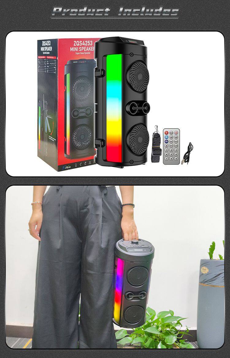 ZQS4275 Portable 25W Power 2*4 Inches Subwoofer Wireless Active Bluetooth Speaker With Colorful Lights