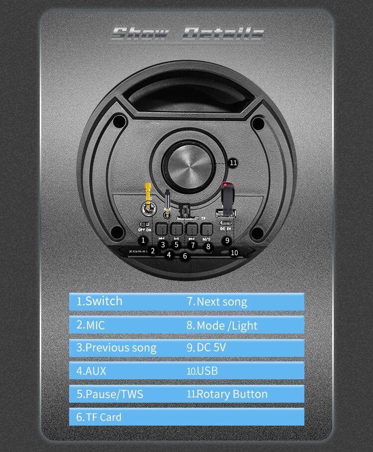 8W Portable Outdoor Led Light Audio Loud Sound Super Bass Subwoofer Party Fm Radio Aux Karaoke Speaker