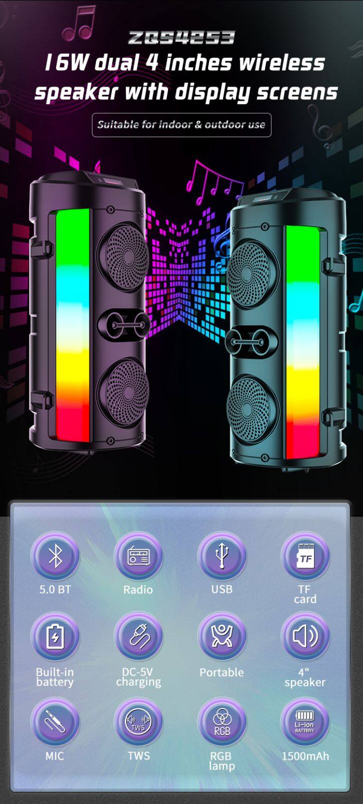 ZQS1453 OEM Professional Portable 4-inch Speaker 8W Power Wireless Bluetooth Speaker for Outdoor