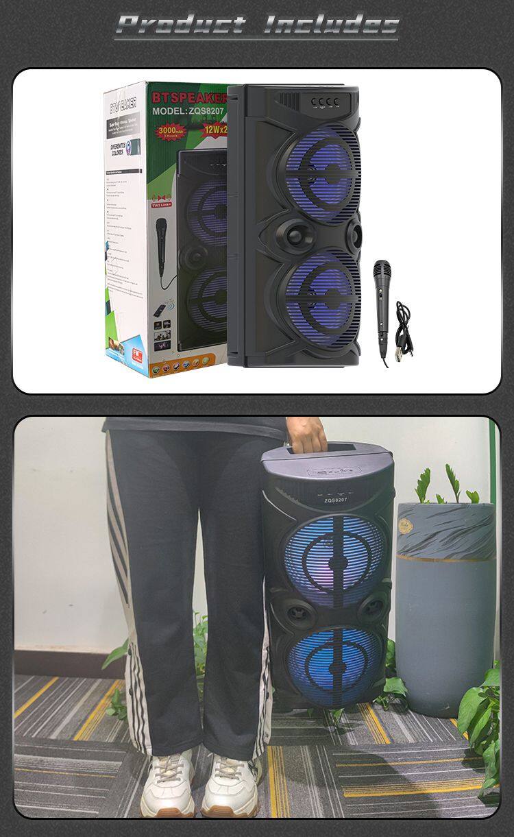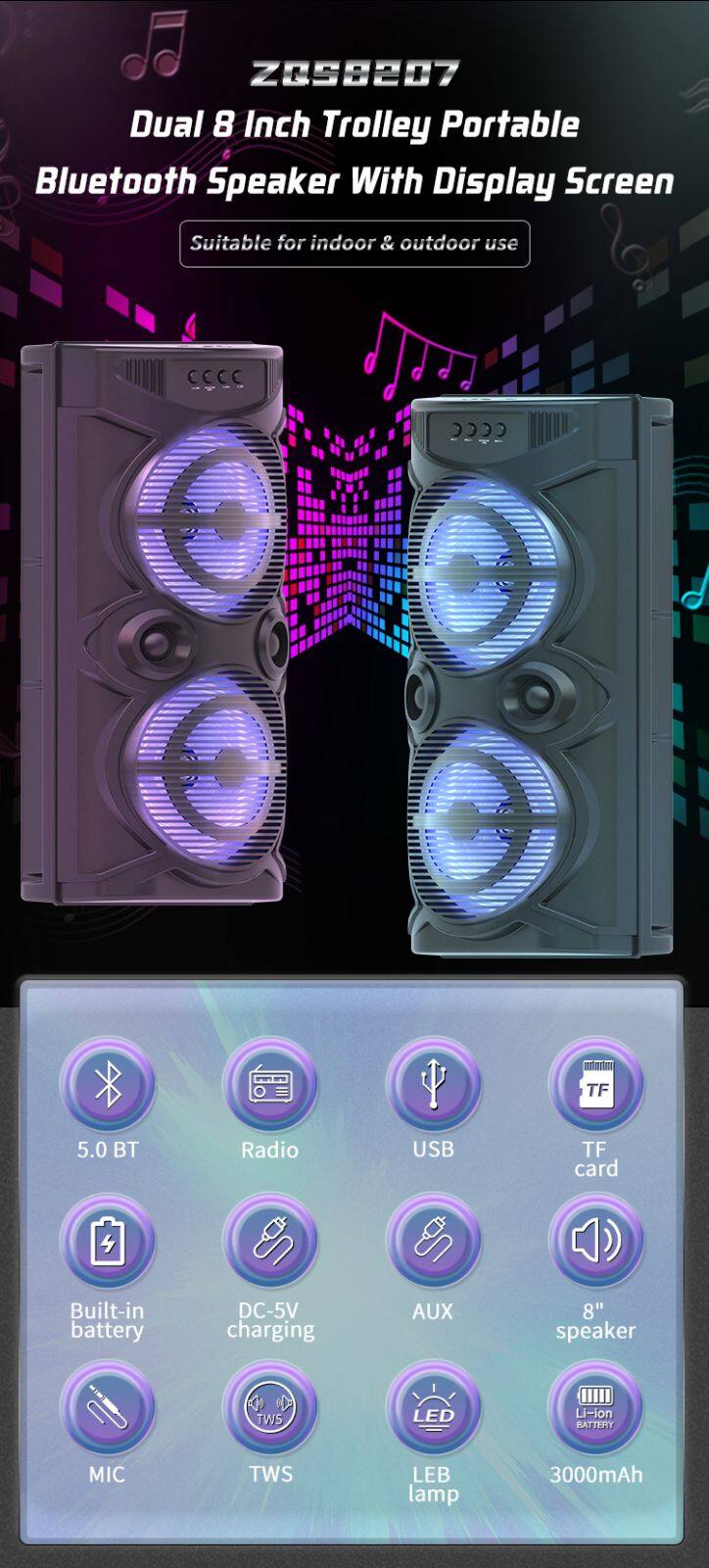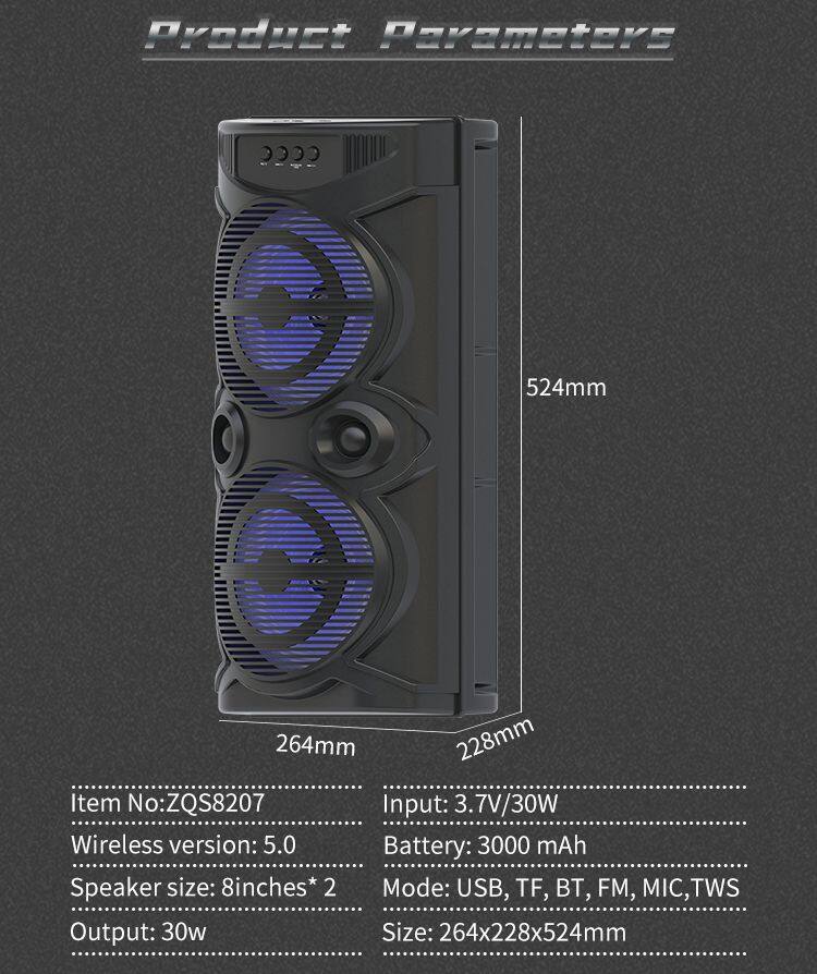ZQS8207 Subwoofer 30W Power OEM Professional Dual 8 Inch Wireless Bluetooth Speaker for Outdoor