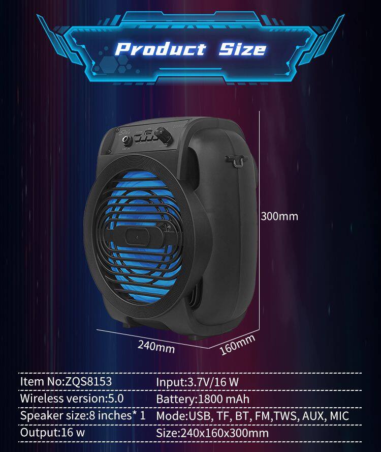 ZQS8155 Factory Custom 16W Power Single 8 Inch Wireless Portable Bluetooth Speaker for Outdoor