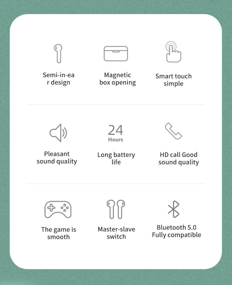 Accessoires | 1xWireless Earbuds 1xBattery box 1x Charging line 1xUser Manual | ||||||