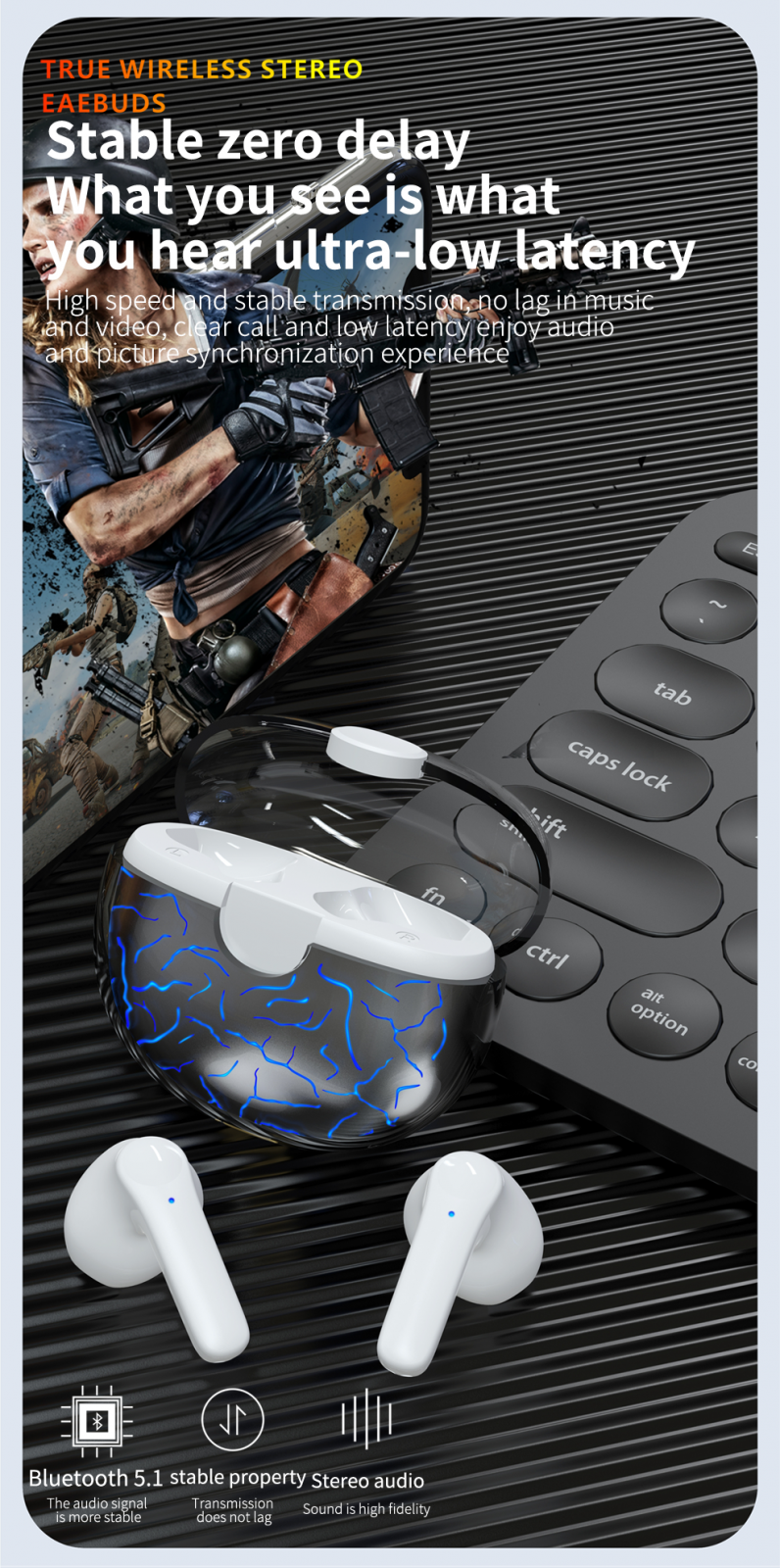 Top Selling Bluetooth 5.1 TWS Gaming Earbuds Waterproof IPX5 True Wireless Earphone With LED Display
