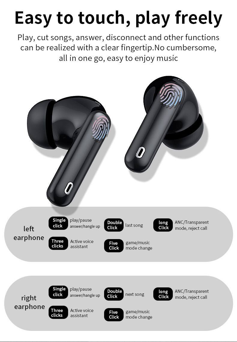 ANC ENC Earphone Mobile Phone Bt 5.1 Tws Wireless Bluetooth Headsets Wireless Mobile Phone Touch Mini Headphone