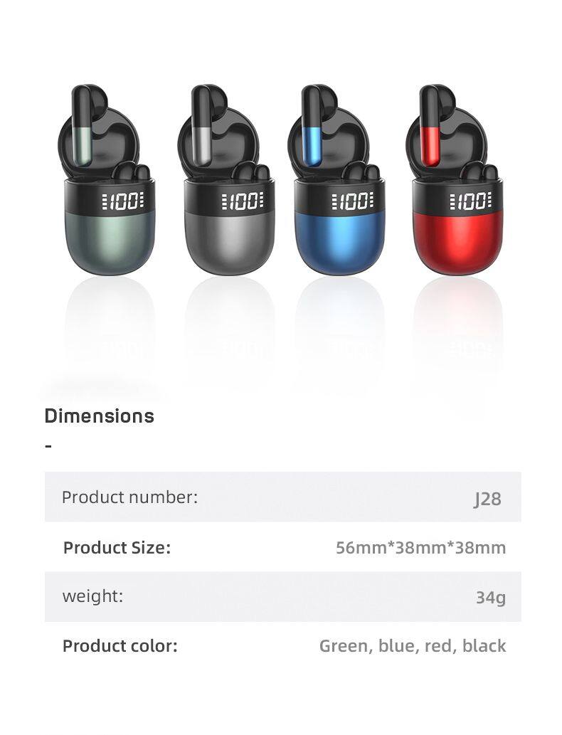 Product Name | New Arrival 2021 New Design Bullet Earphones v5.0 TWS J28 Wireless Stereo Earbuds | ||||||