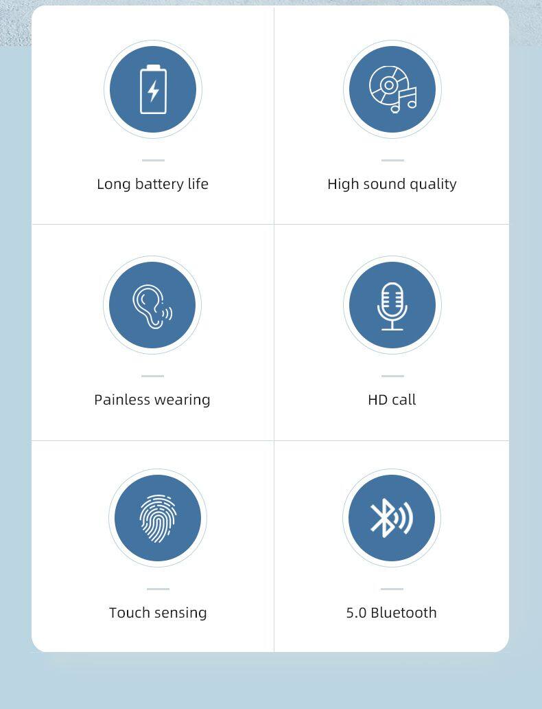Accessoires | 1xWireless Earbuds 1xBattery box 1x Charging line 1xUser Manual | ||||||