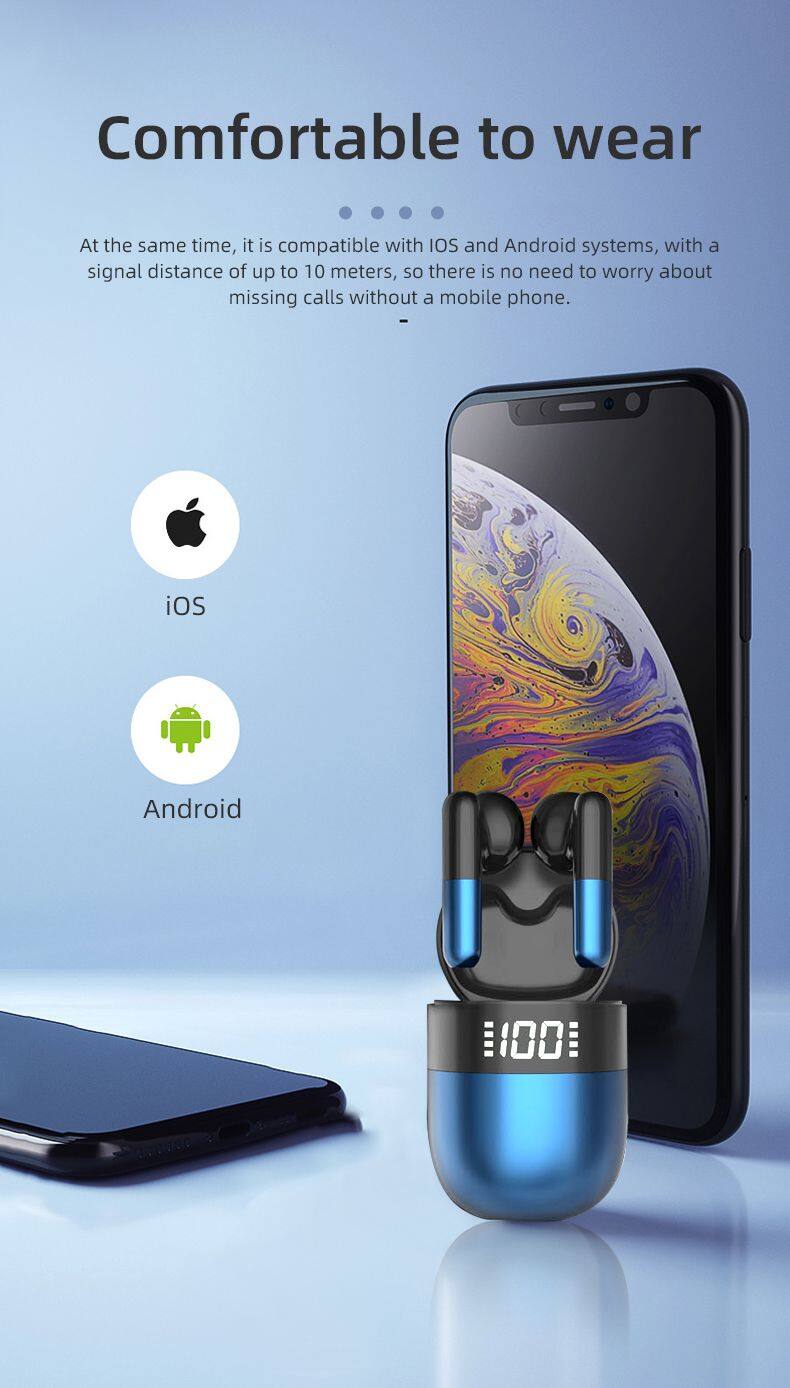 Unique Design Mini Wireless Bluetooth V5.1 Earphone IP67 Waterproof Sports Earbuds With LED Display