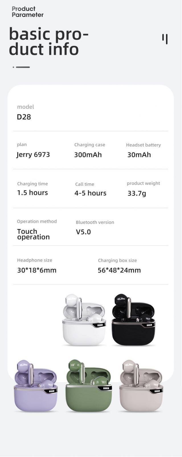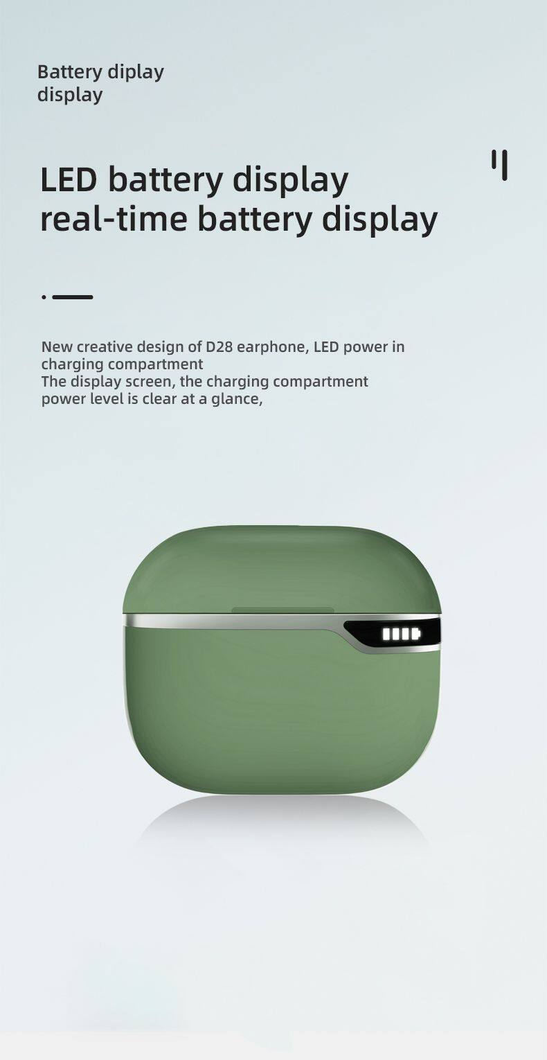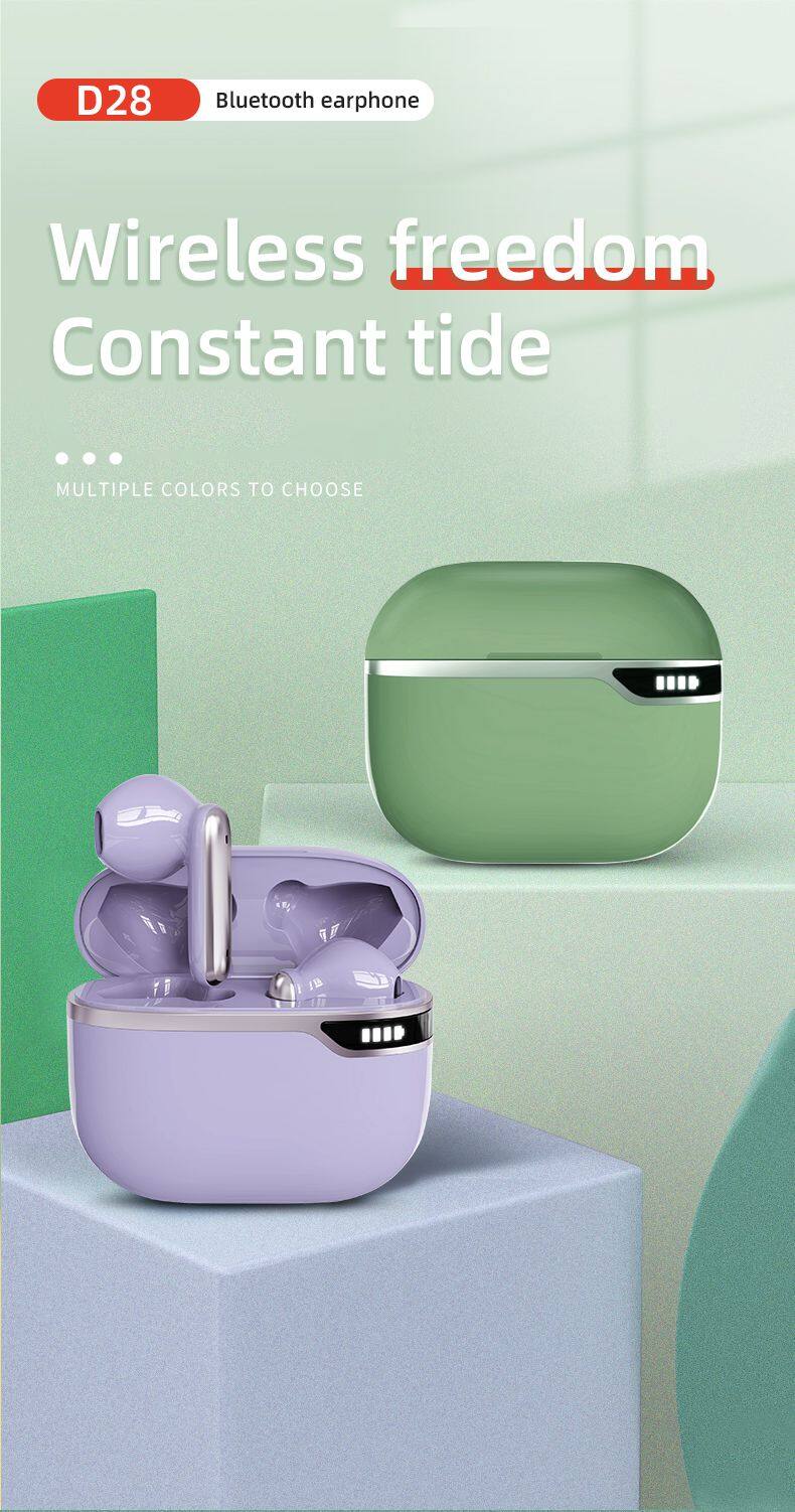 Hot Selling D28 Headsets Sports Game Noise Reduction Earphones Led Display Colorful Wireless BT Type-C Headsets