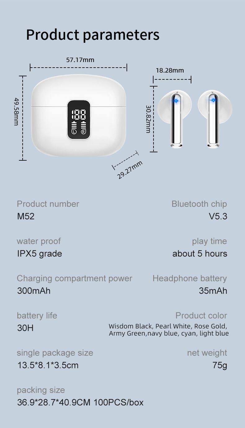 Good Quality Mini BT 5.3 Earphone Headphones Stereo TWS ENC Cancelling Wireless Earbuds With LED Display