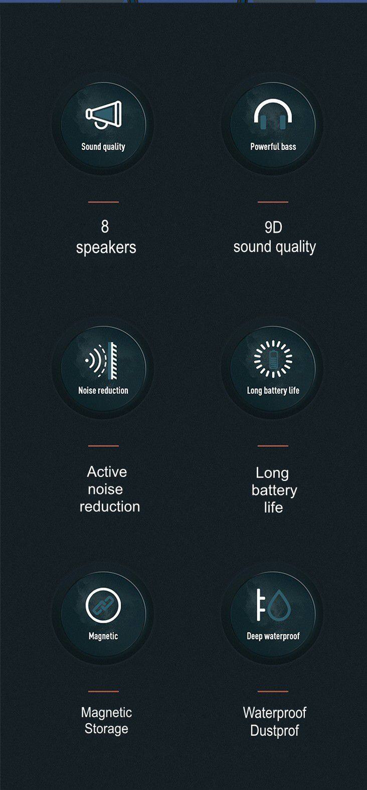Neckband Wireless 5.0 Sports Earphones Metal Magnetic Tws Stereo Heavy Bass Handfree With Mic