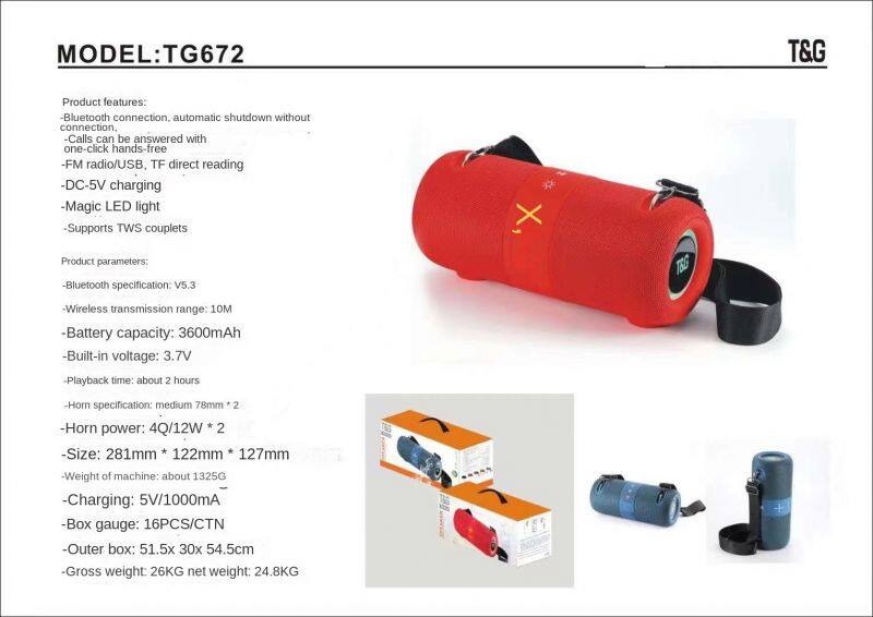 Home > Products > Other > New TG672 Wireless Bluetooth Speaker Outdoor Portable Card Subwoofer TWS Gift Speaker Waterproof Radio Haut Parleurs