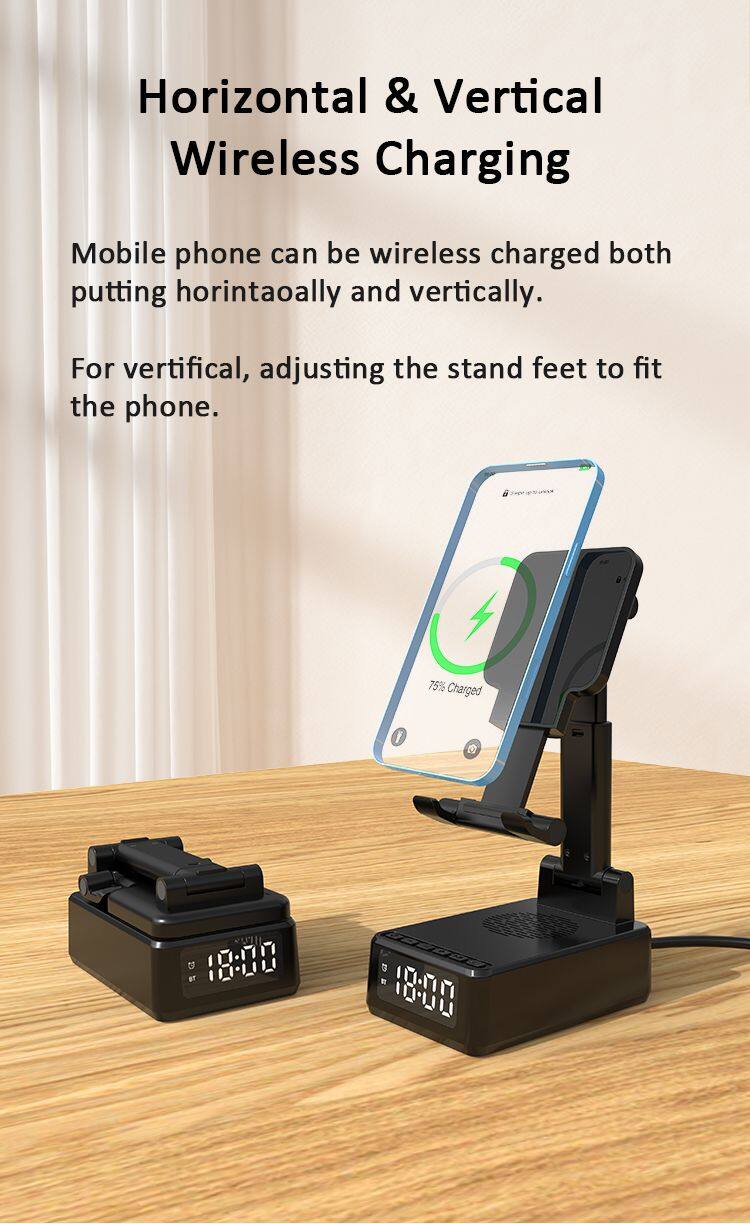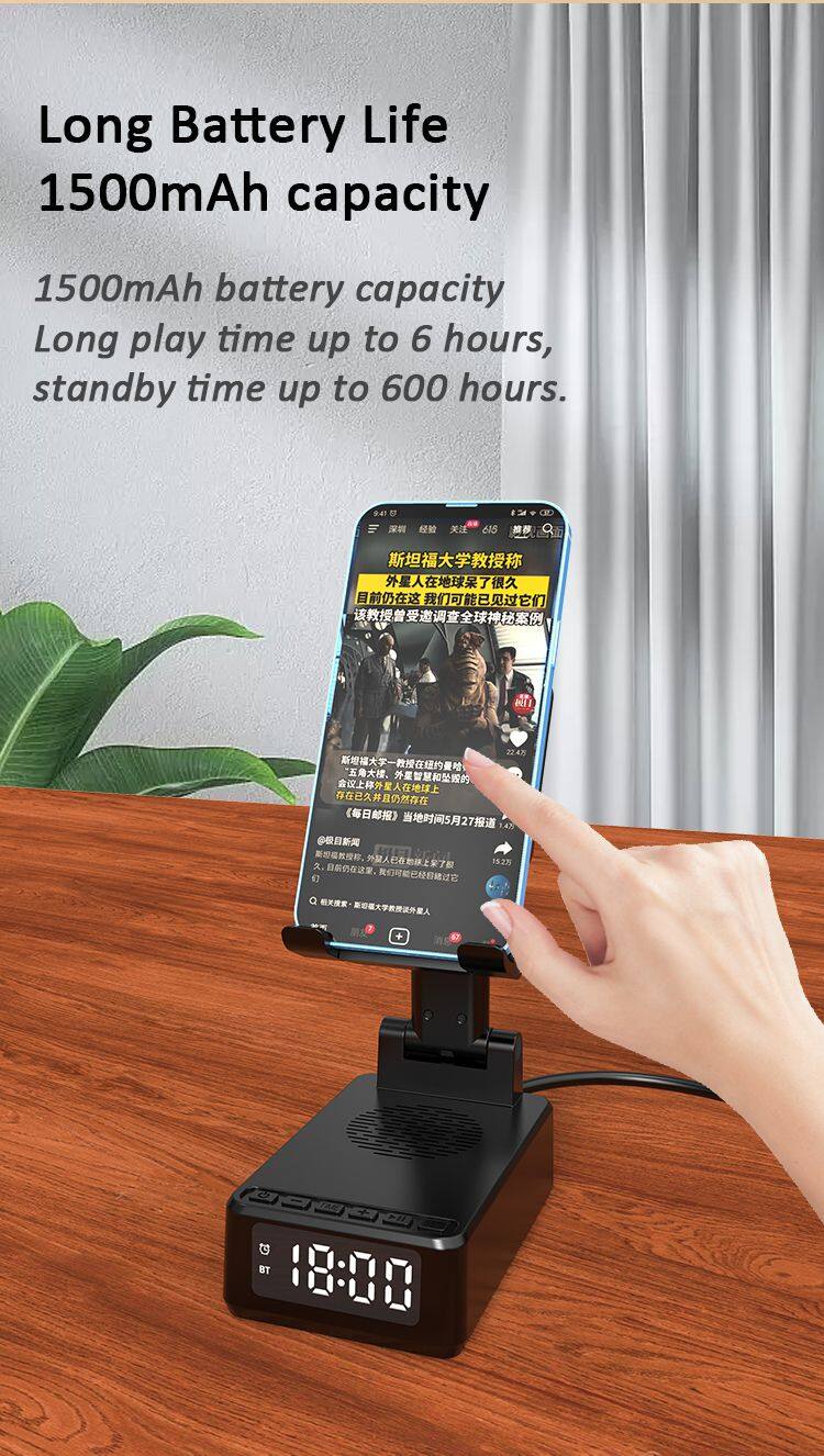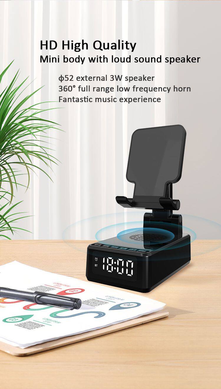 New HF18 Wireless Charging Speaker FM Radio LED Display Alarm Clock Multifunction Digital Alarm Clock Bluetooth Speaker 3 in 1