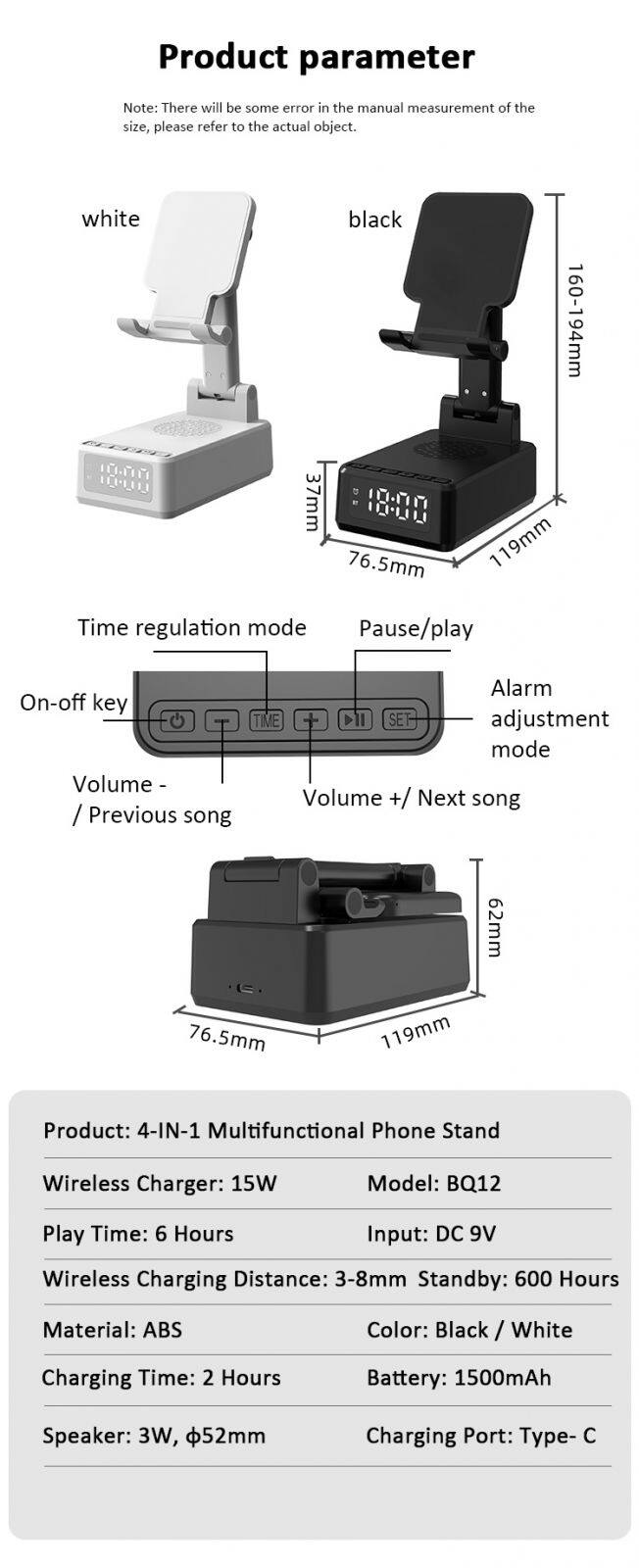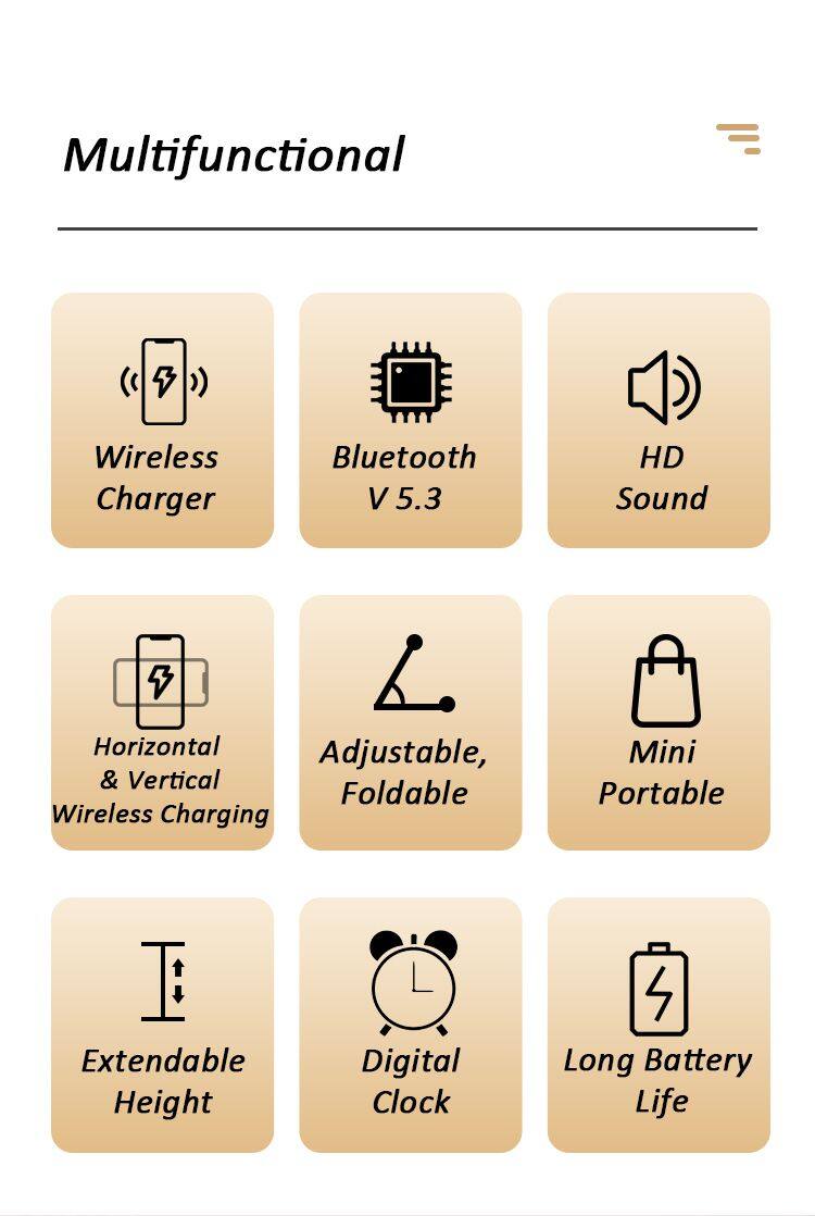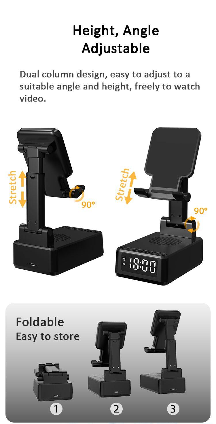 Home > Products > Other > New Three-in-one Bluetooth Speaker Wireless Charging Mobile Phone Holder House Hold Desktop Play Folding Phone Holder