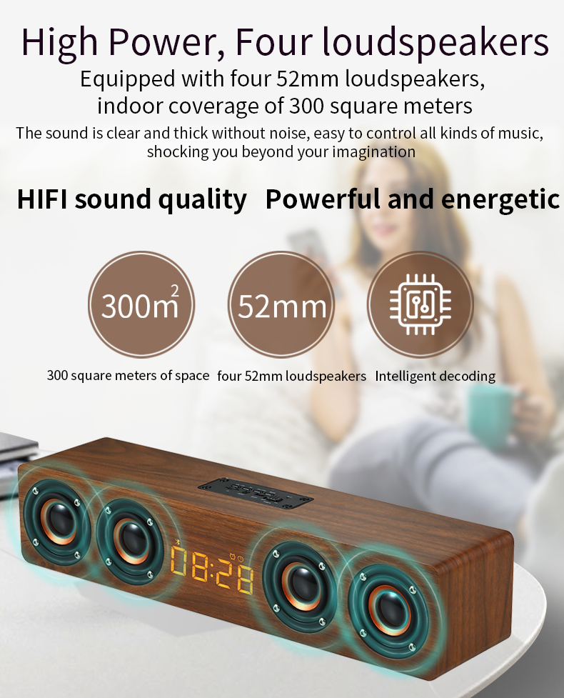 Home > Products > Other > Wooden Bluetooth Speaker 4 Speakers Sound Bar TV Echo Wall Home Theater Sound System HIFI Sound Quality Soundbox for PC/TV