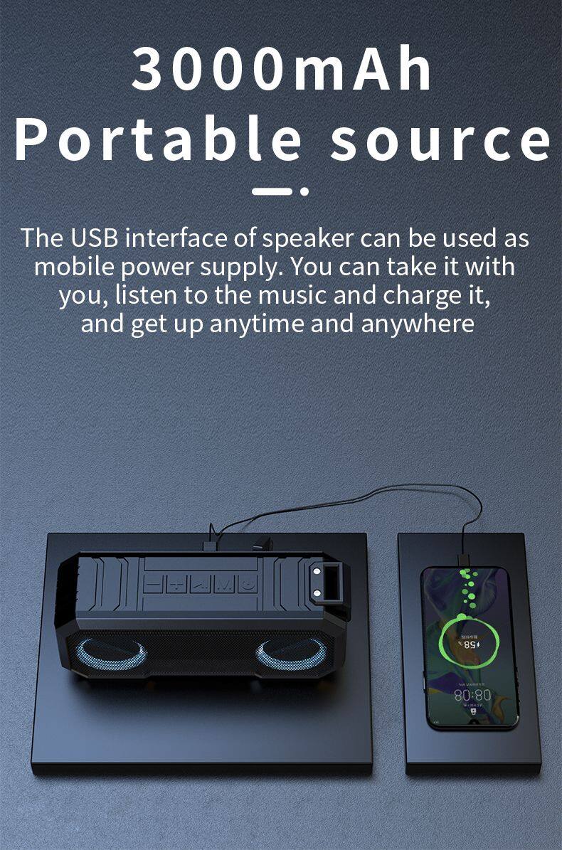Bluetooth Speaker X8 Wireless Portable Outdoor LED Light IPX7 Waterproof 3000MAh Battery Subwoofer Support TF Card / AUX
