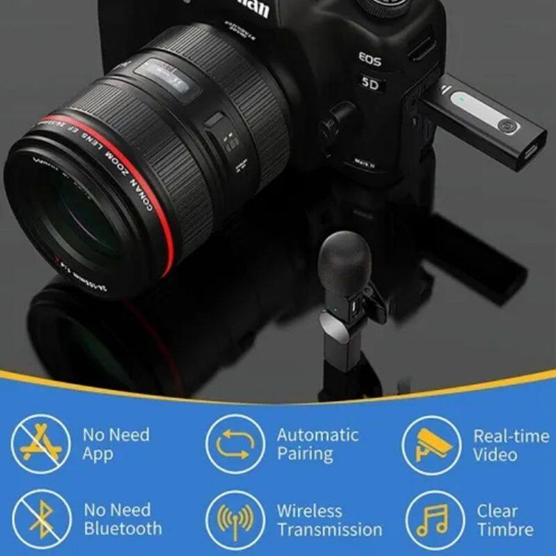 Professional Video Recording Mini Small Portable Mic Wireless Lavalier Lapel Microphone for YouTube Interview Livestream