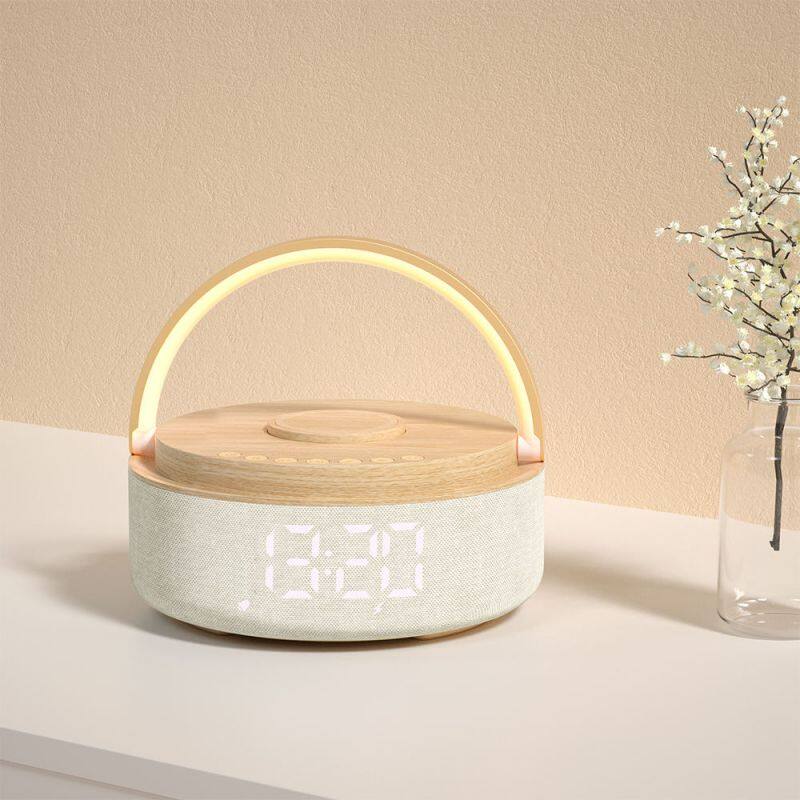 High Quality 15W Fast Wireless Charging Station Portable Bluetooth Speaker Alarm Clock With Table Lamp