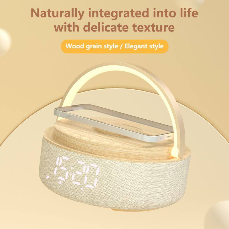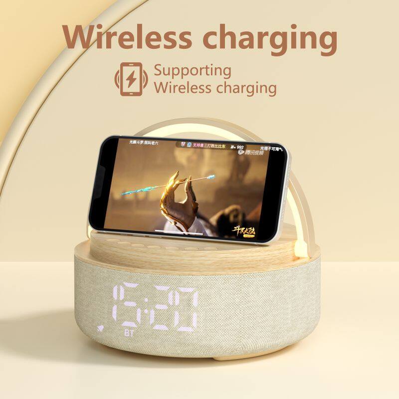 Product Name | Wireless Charger with table lamp combine with Good Sound Wireless Speaker and Time Clock |