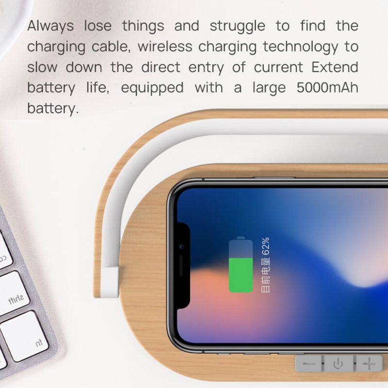 Bluetooth Speaker Strong Bass Table 10W Wireless Charger Desk Lamp Customize Logo Night Light Smart Cell Phone Holder