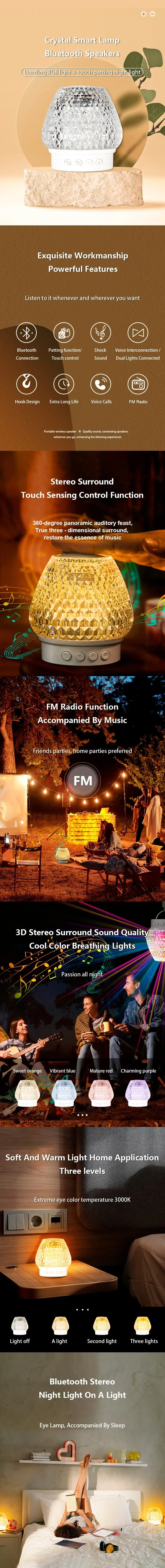 New Colorful Night Light USB Audio Crystal Table Lamp With TF FM Charging Bedroom Ambient RGB Speaker Wireless