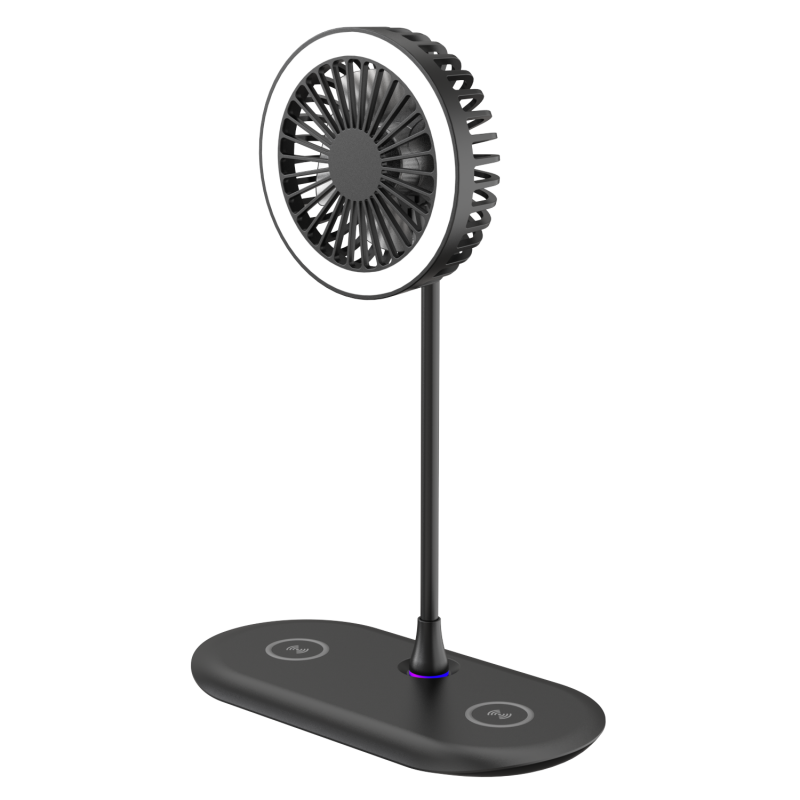 2-in-1 Multifunction Lamp Fan Stand-up Fan Desktop Wireless Charge USB-C Free Rotation Wireless Charger 15w