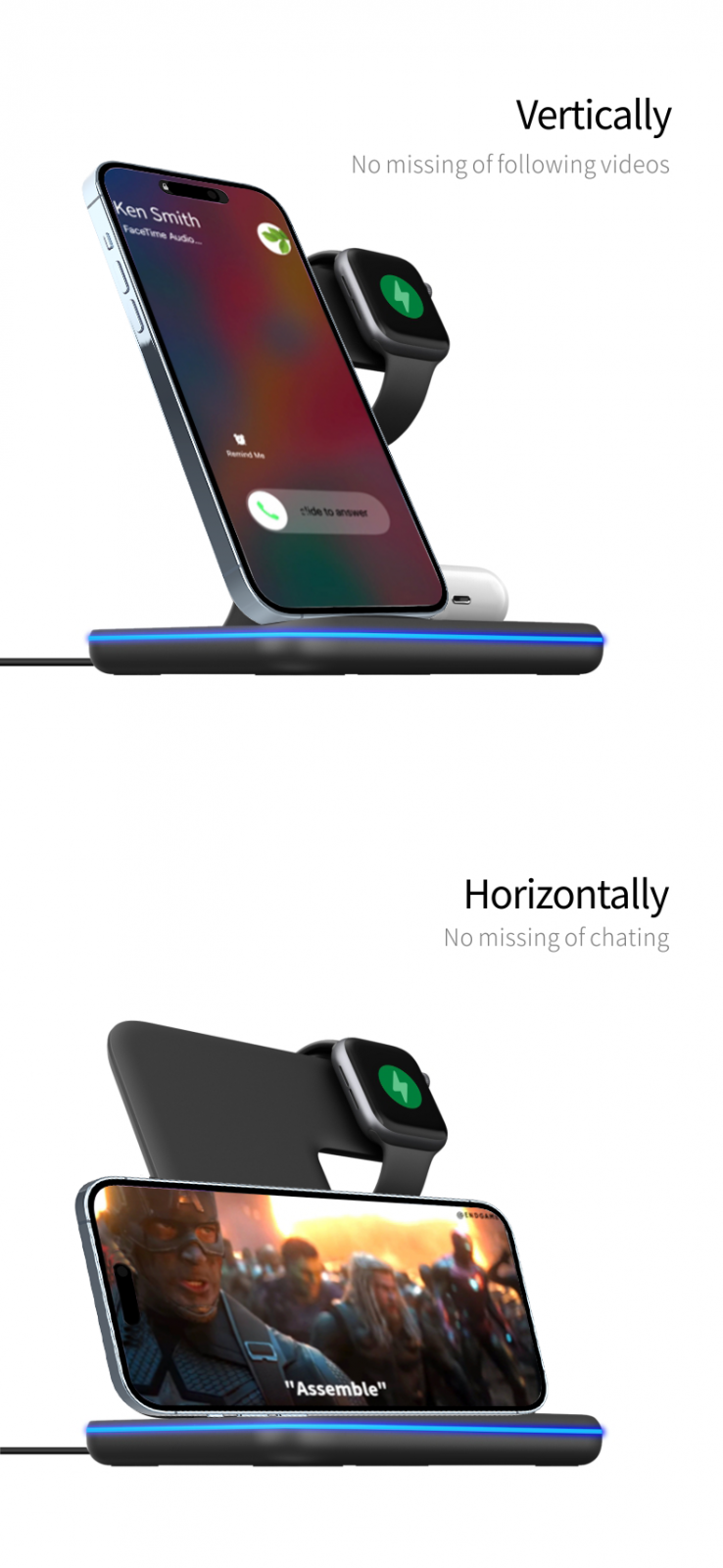 Home > Products > Other > Adjustable 3 in 1 Foldable Magnetic Wireless Charge Watch Mobile Phone 15w Wireless Fast Charger