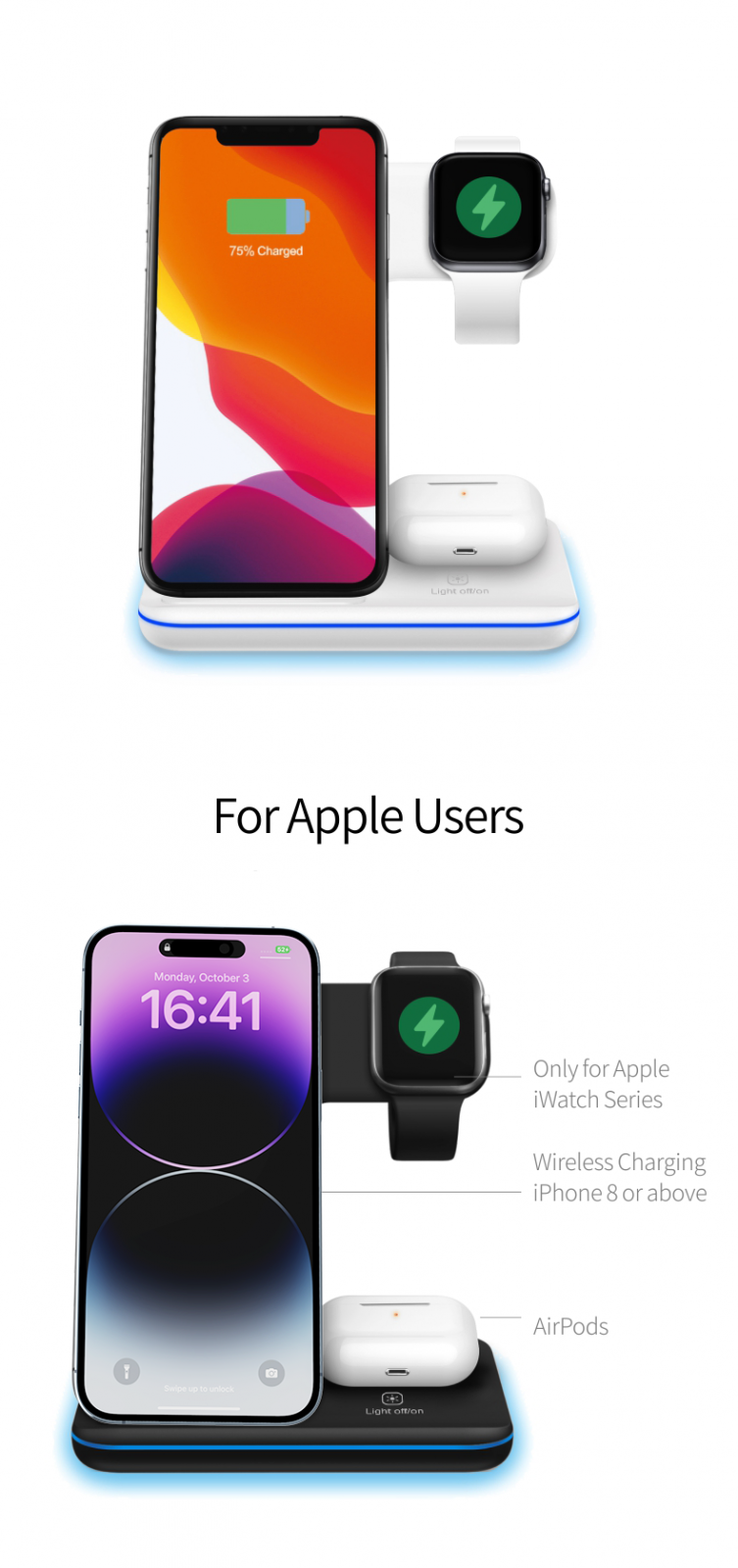 3-in-1 ABS Material Wireless Charger Black and White Folding Design for Multiple Devices