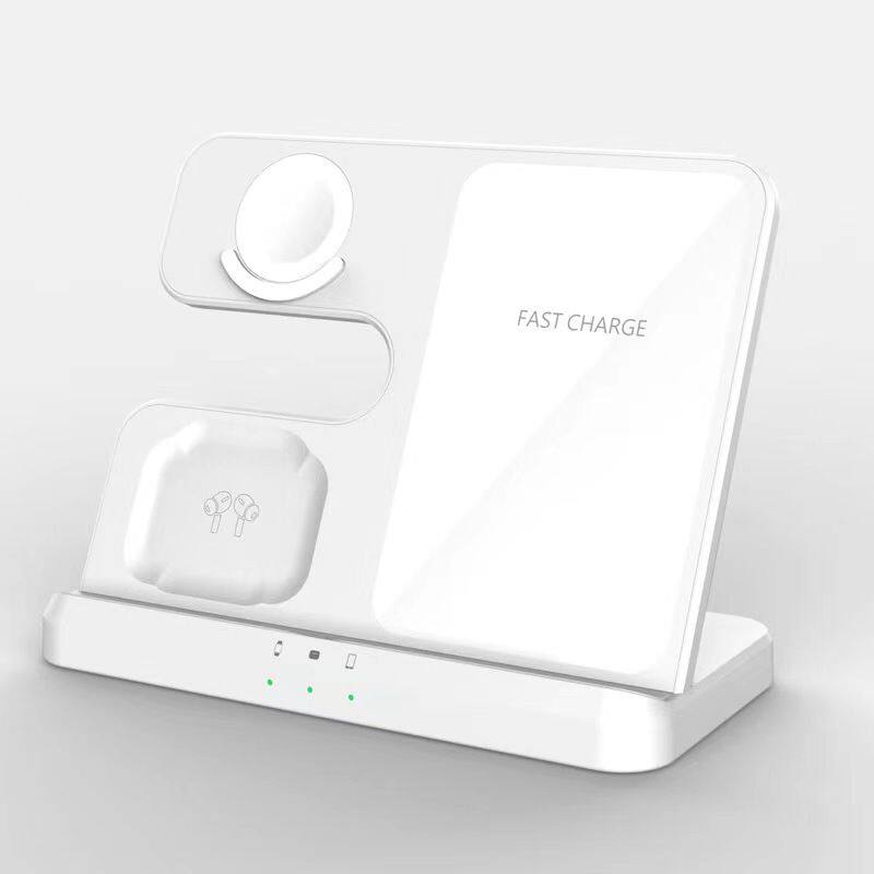 ABS Composite Material White and Support Color Customization Desktop Phone Headset Watch 3-in-1 Wireless Charger