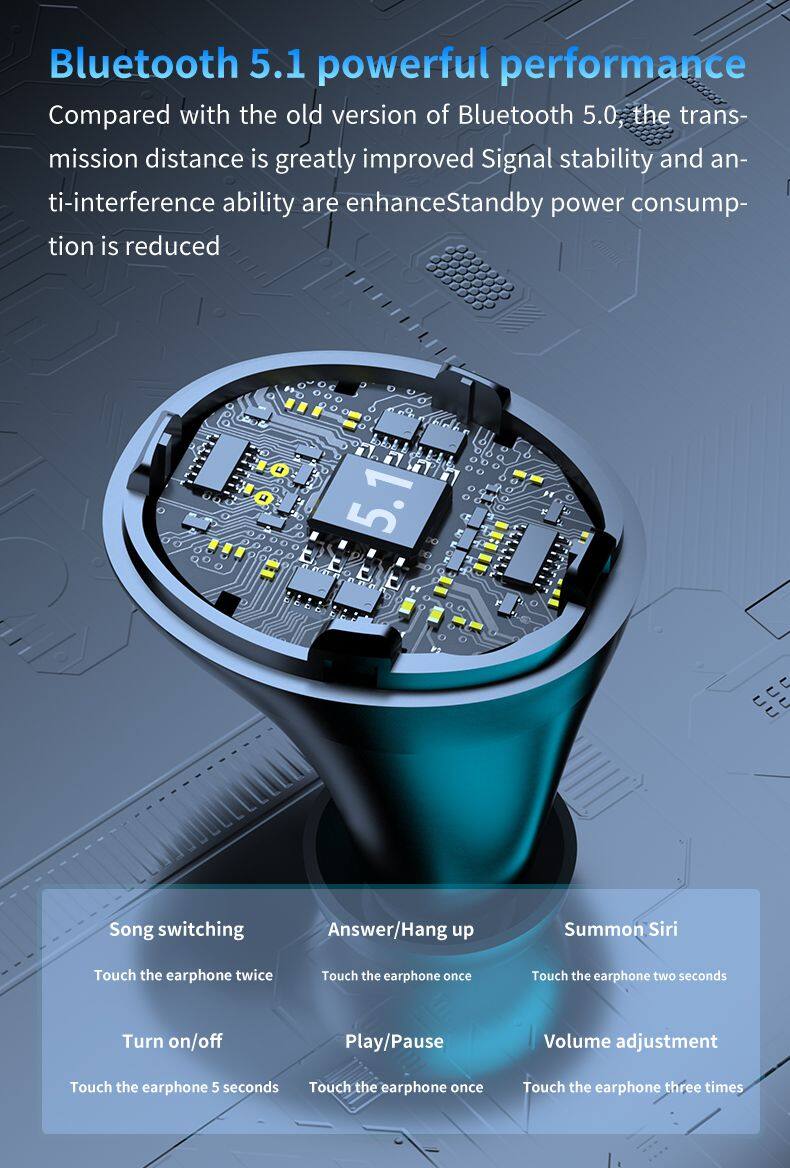 P3 Tws Touch Control Heavy Bass Stereo Dsp Denoise Earbuds Handsfree Calls Wireless Headphone Earphone Bluetoth