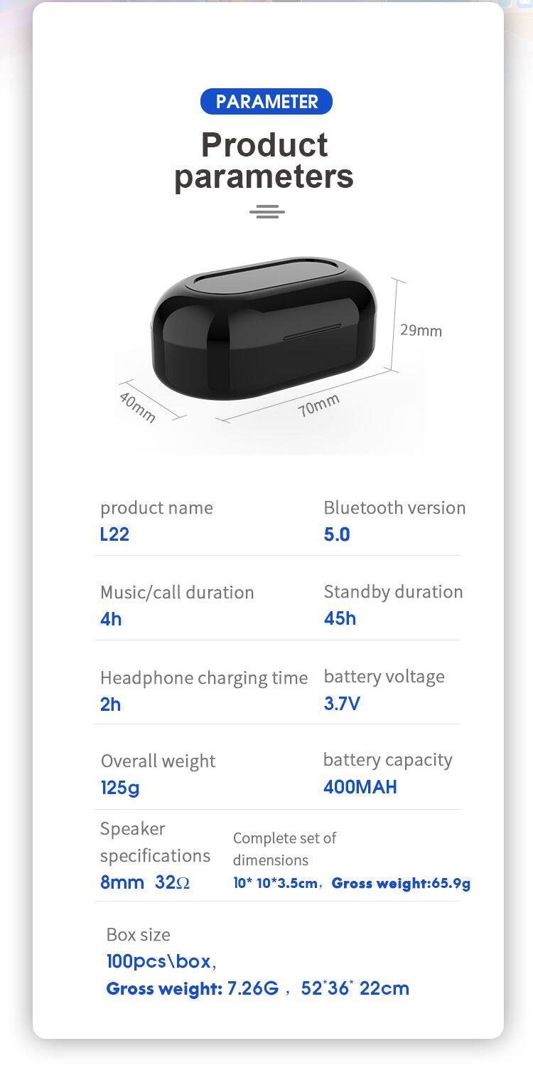 L22 TWS Wireless Earphones BT5.0 Headphones Dual Call Bass Mini Stereo Sport Headset