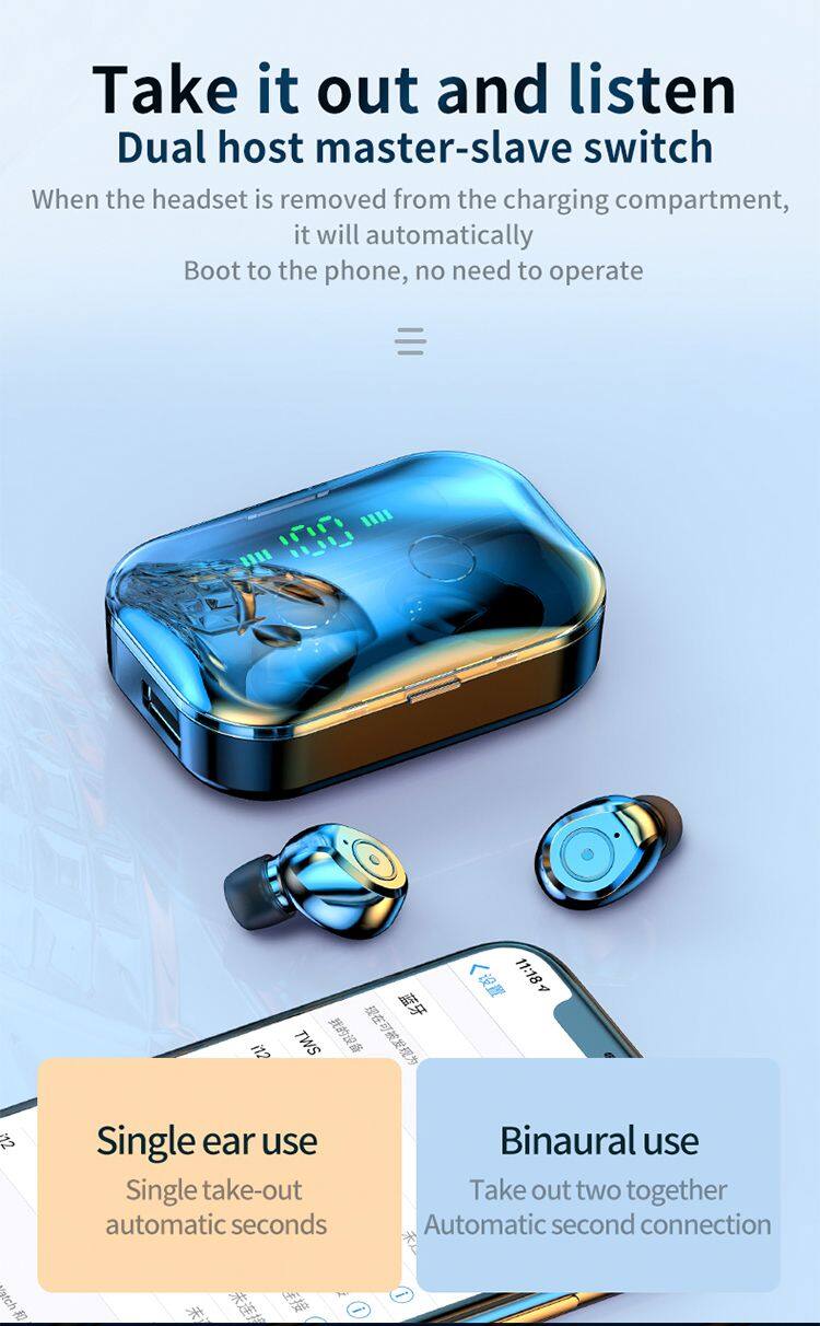 M1T TWS Waterproof Dual Wireless Earbuds Noise Cancelling Headset Sports Stereo Earphone in Ear Headphones With Mic Powerbank