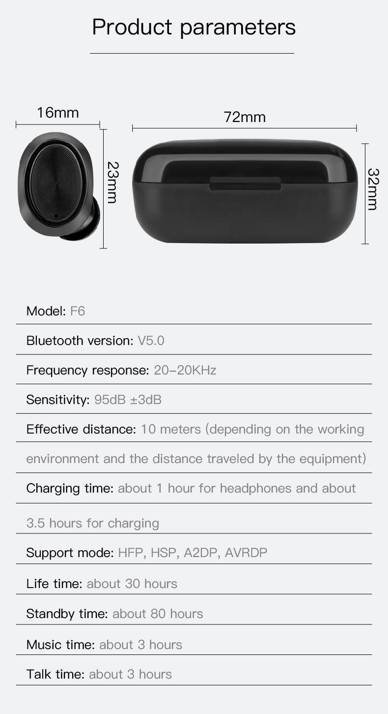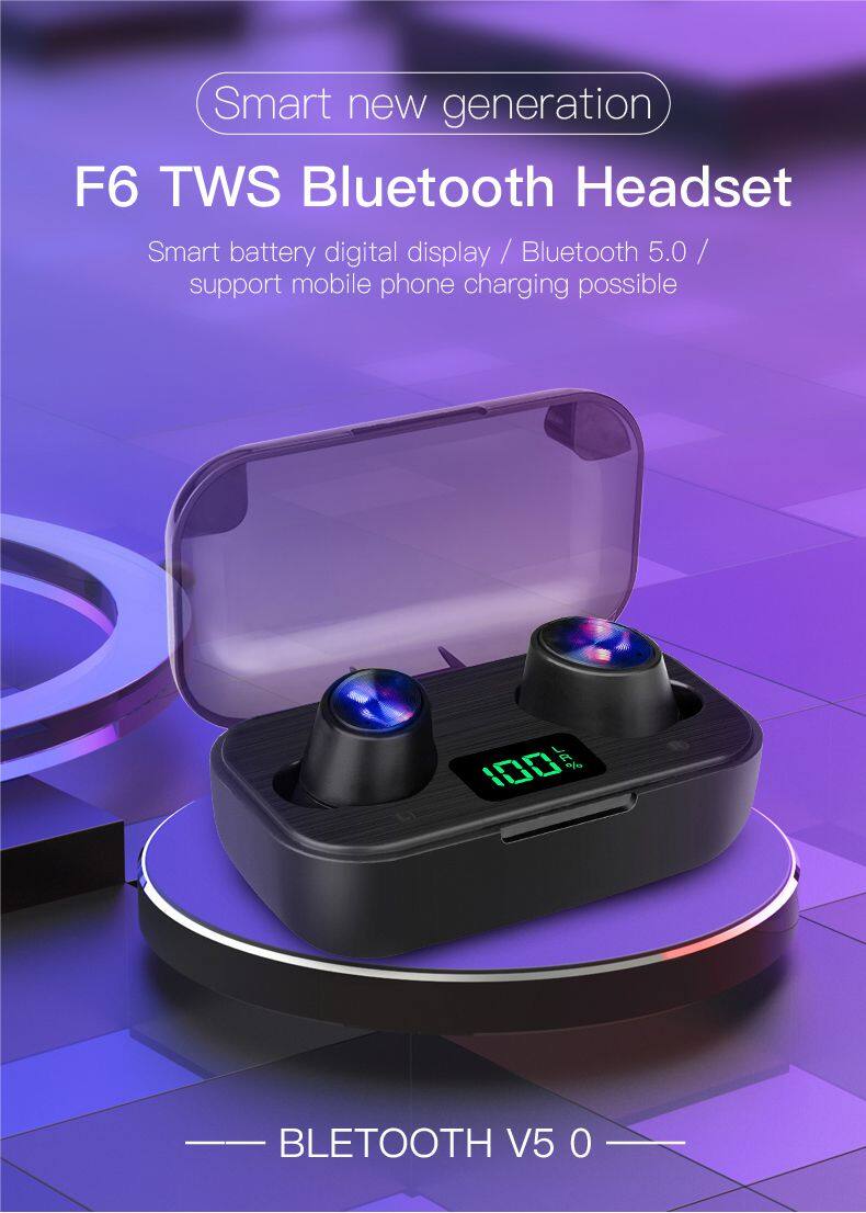 F6 TWS Sports Stereo Wireless Bluetoth Headset With Charger Box