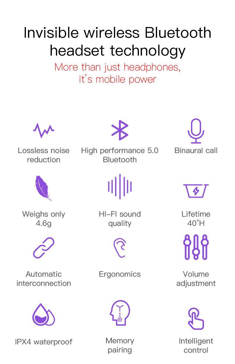 XY-10 TWS Wireless Headphone LED Display 9D HiFi Stereo Sport Waterproof Headsets BT5.0 Earphones With Microphone