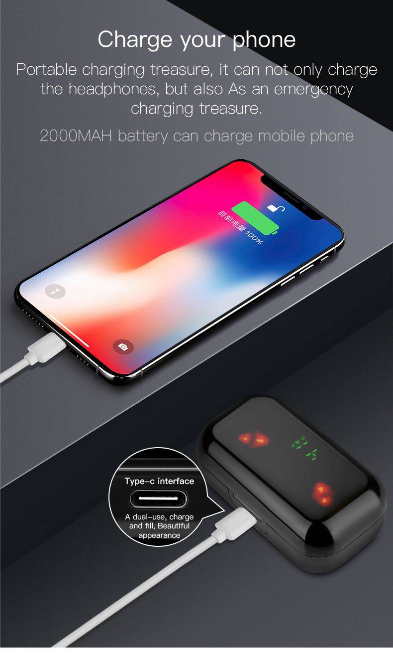 M1T TWS Waterproof Dual Wireless Earbuds Noise Cancelling Headset Sports Stereo Earphone in Ear Headphones With Mic Powerbank