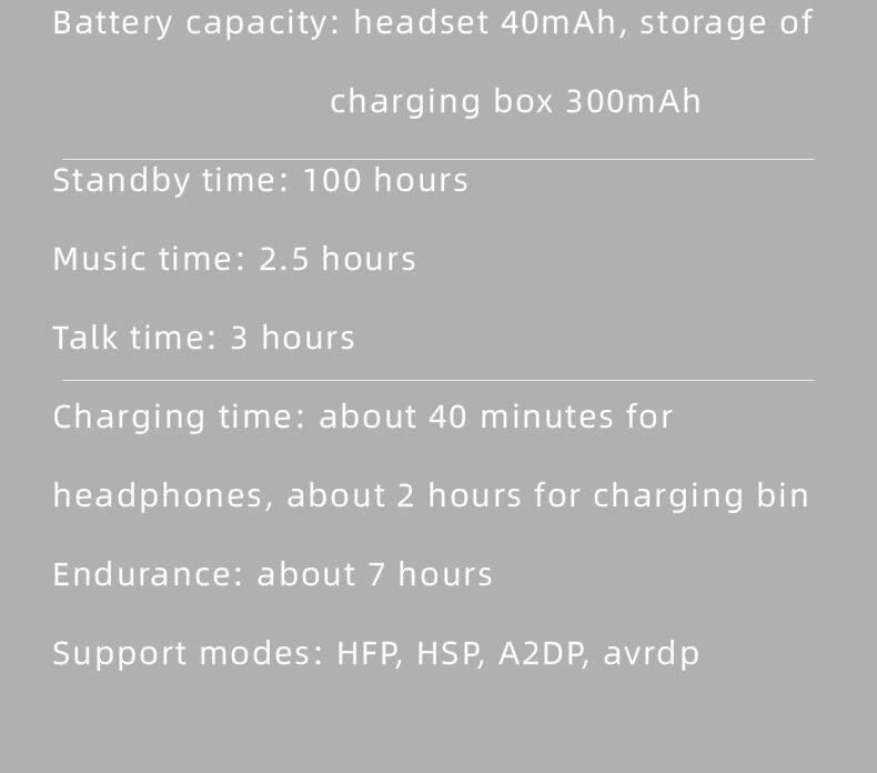 Charging Type | Charging box USB socket charging, headphone magnetic charging |