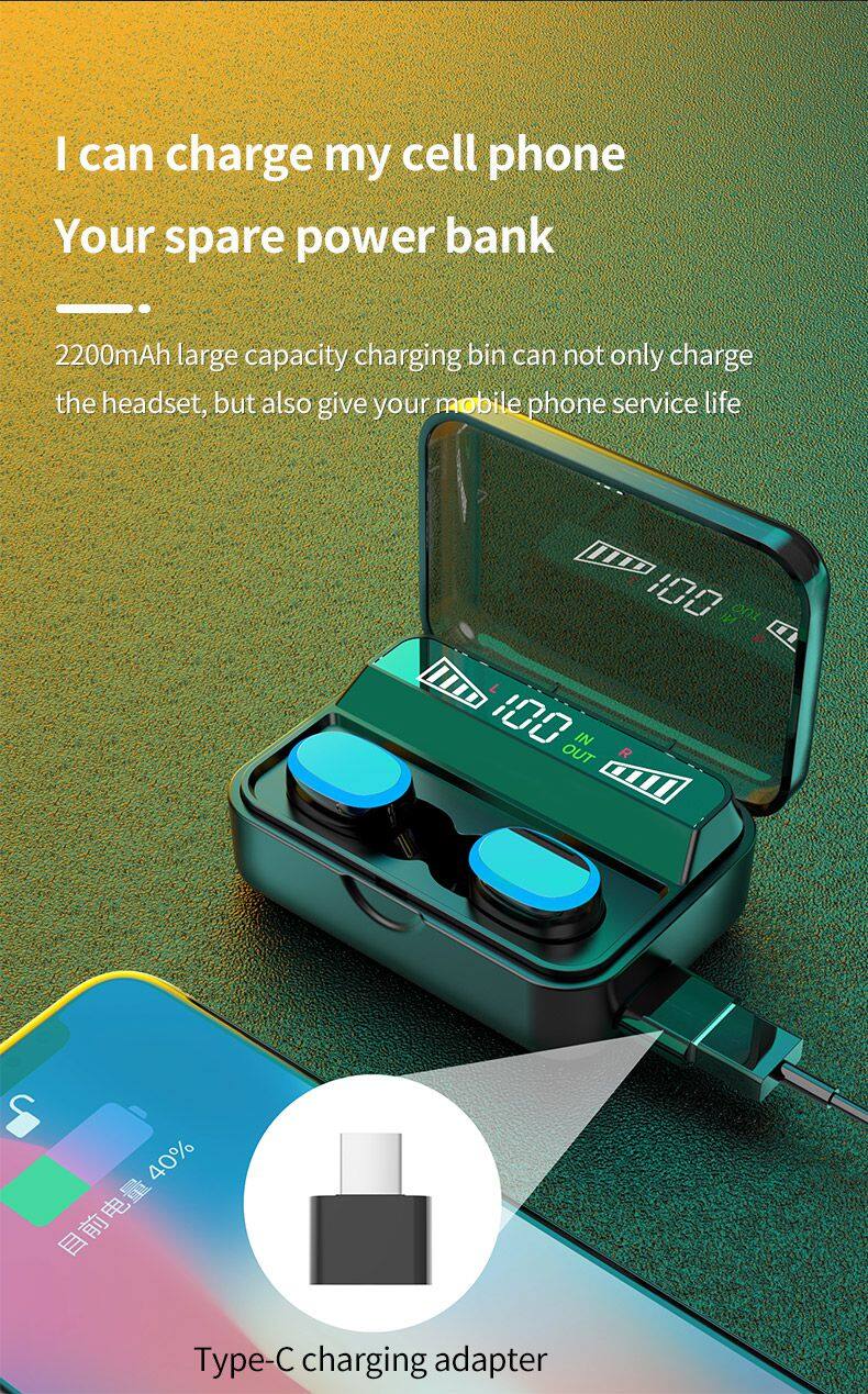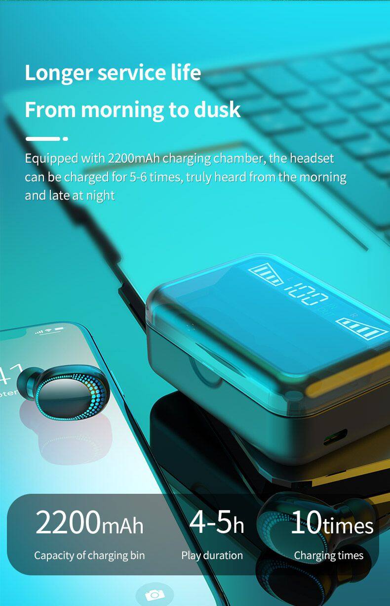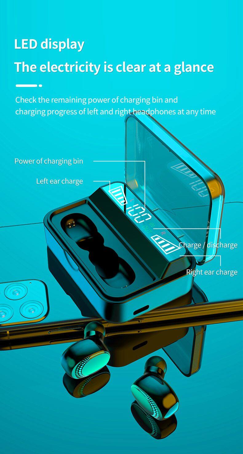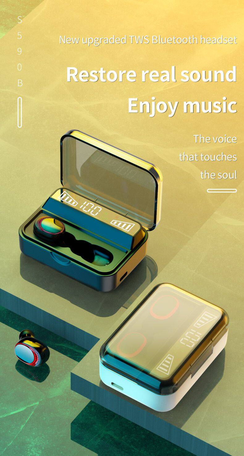S590 Tws 2021 Waterproof Touch Control Earphone True Wireless Stereo Blue Tooth Earbuds With Led Display Power Bank