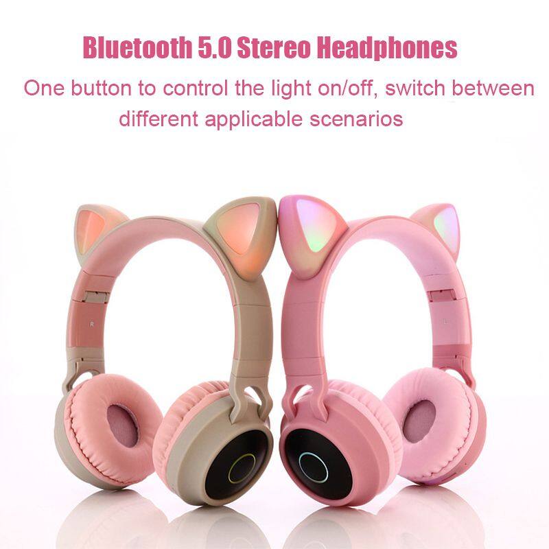 2021 New ZW-028 LED Cat Ear Wireless Headphones Girls Bluetooh Headset Support TF Card 3.5mm Plug With Mic