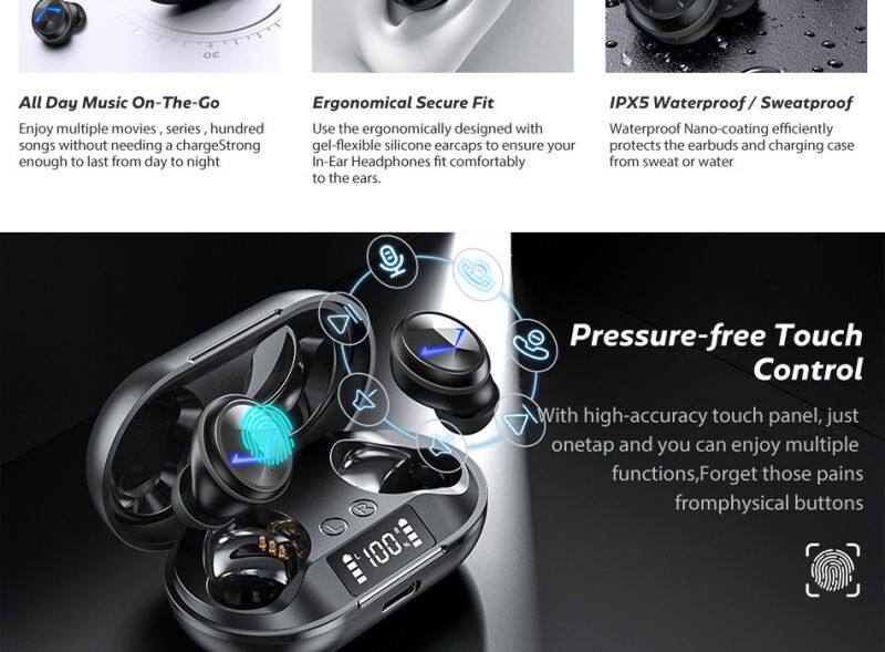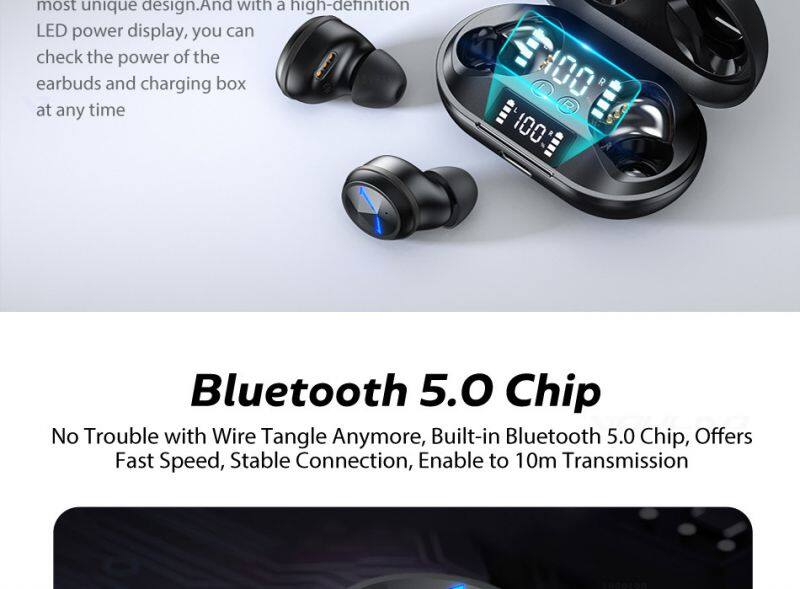 T11 Earphone TWS 5.0 Gaming Headset IPX7 Waterproof With LED Display Smart Charging Box Wireless 9D Stereo Headphones