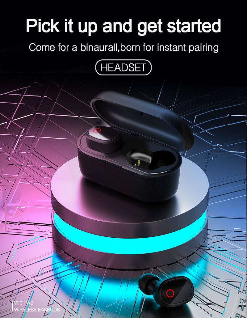 V20 TWS 5.0 Headset Wireless Headphones 3D Stereo Sport Earphone Mini Earbuds for IPhone Xiaomi Huawei Samsung