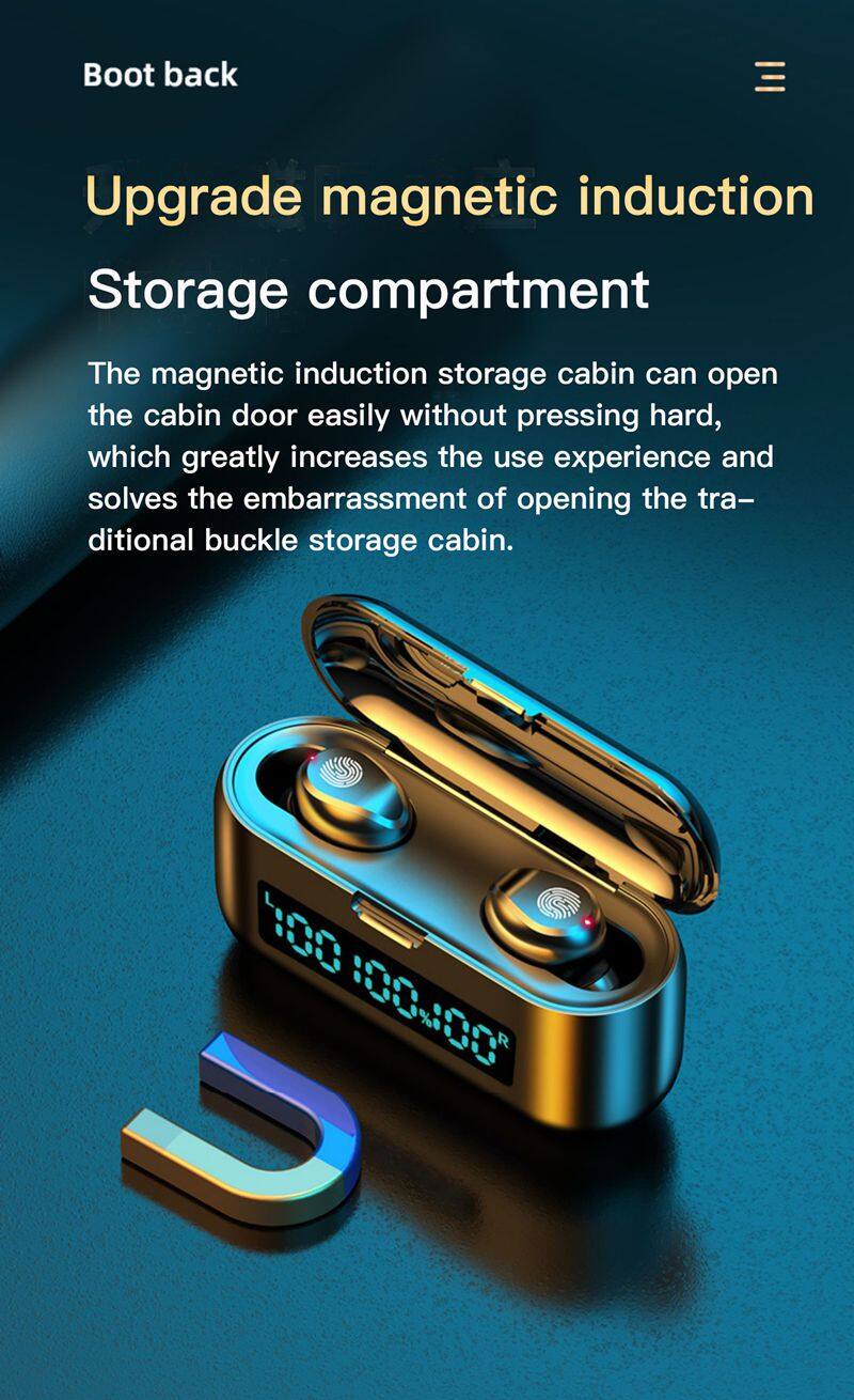 F9-39 Tws Headphone 9D Hifi Gaming Headset Wireless Earphone 2000mAh LED Display Blue Tooth 5.0 Touch Control F9 Earbuds