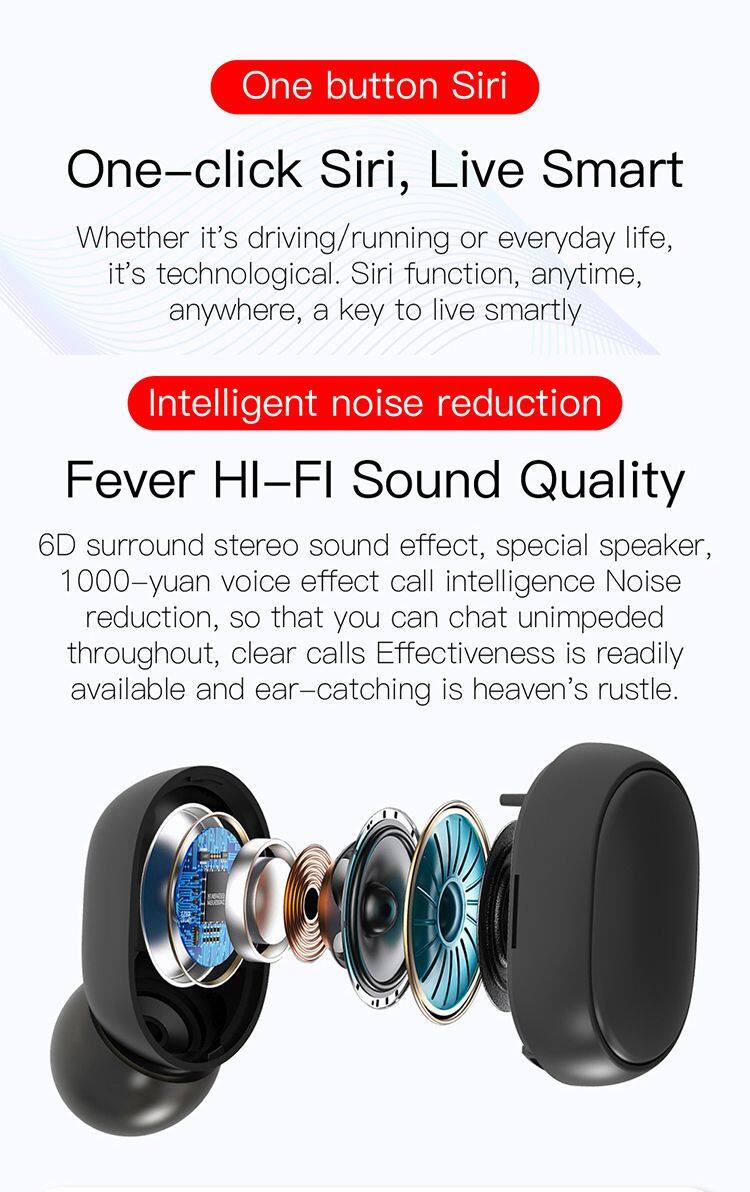 New A6 Tws Wireless Headphone High Quality Earbuds Stereo Handfree Earphone For Redmi Iphone Huawei Samsung