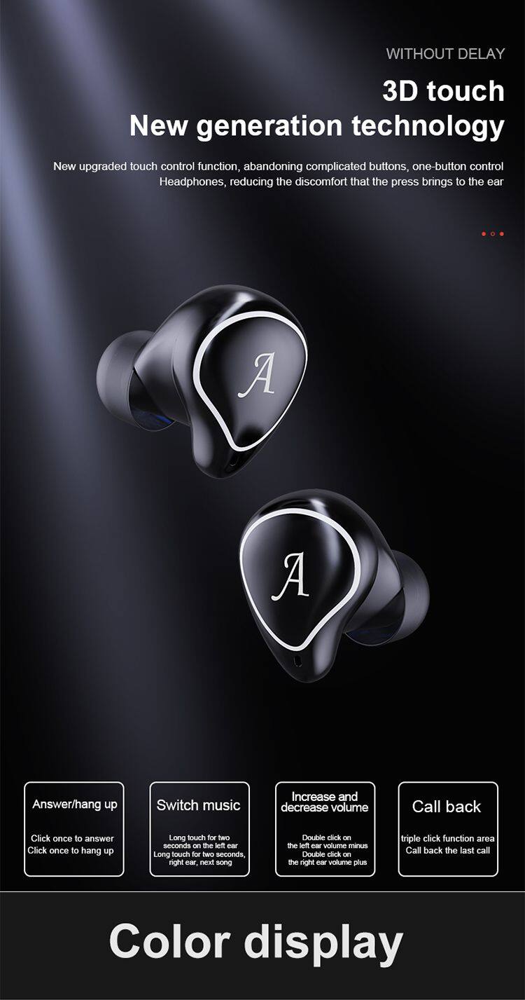 A10 Wireless Mini Sport Stereo Headset Waterproof Bluetoth 5.0 Earbuds Touch Control TWS In-Ear HiFi Earphone With Charging Box