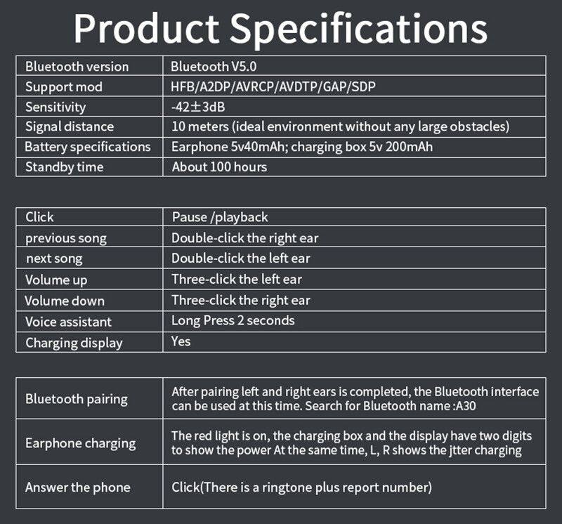 2022 New Private Mode A30 TWS Blue Tooth Headset Business Binaural Stereo High-Definition Call Wireless Earbuds