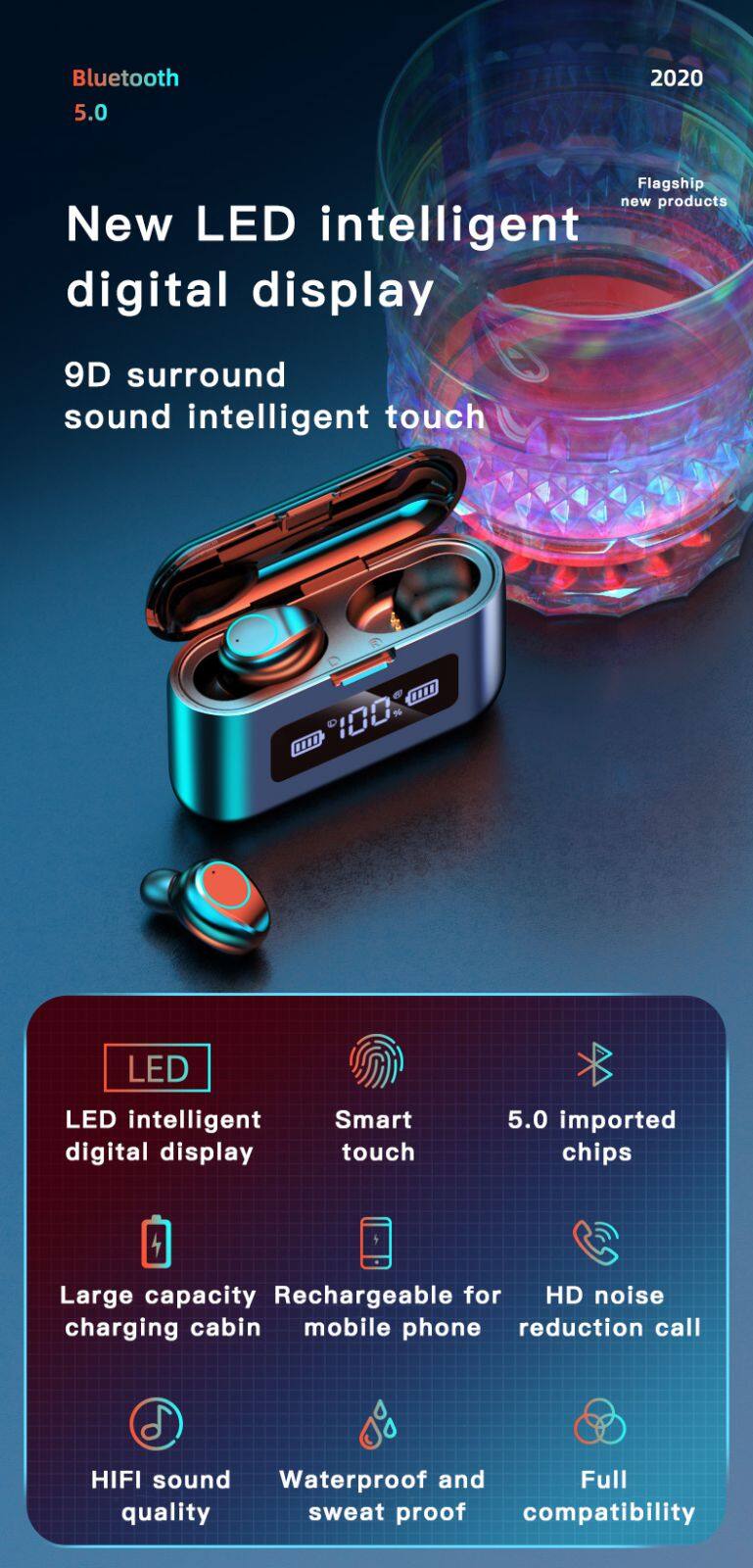 F9-13 TWS Touch Earbuds 9D Noise Reduction Sports Wireless Headset Surround Sound Stereo Headphone Hendsfree Earphone
