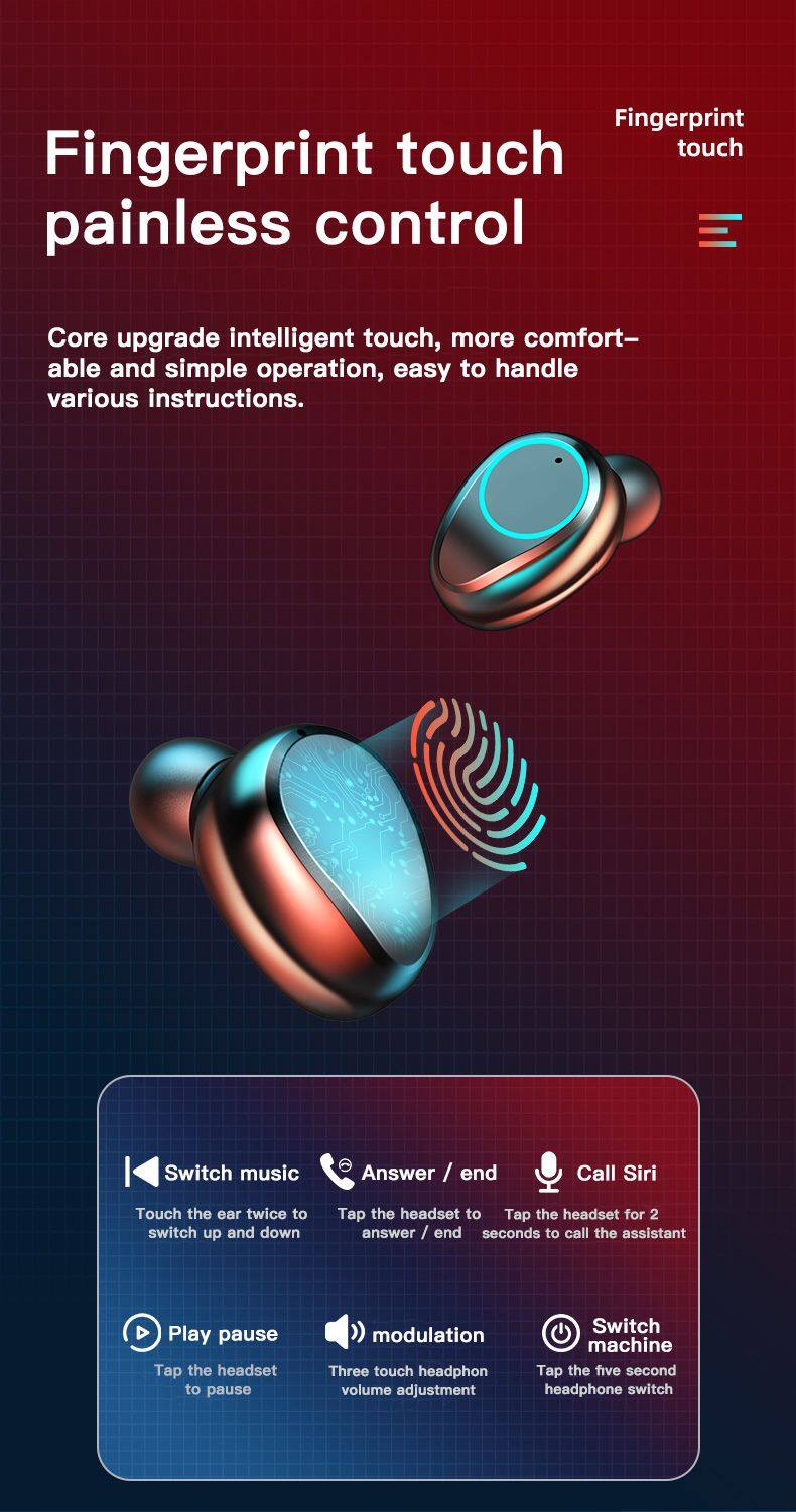T10 TWS Fingerprint Touch Stereo Headsets Sport Gaming Headphones Wireless Earbuds Blue Tooth With 4000mAh Waterproof Earphone